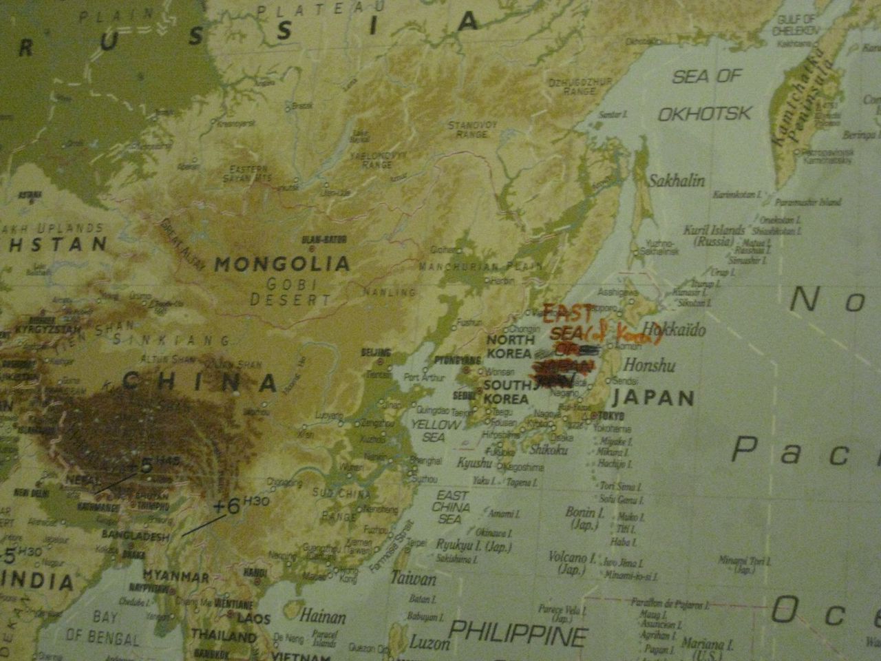 ホテルのフロント前にある大きな世界地図にて。少し個人的に残念だったのがこの写真。特に直接的に嫌なことがあったわけでは全くない。が、この手の件に敏感な人は普通のホテルをお勧めしたい。この手のニュースは良く耳にしていたが、実際に目にすると非常にショックなものである。ちなみに、他の落書きは見当たらなかった。