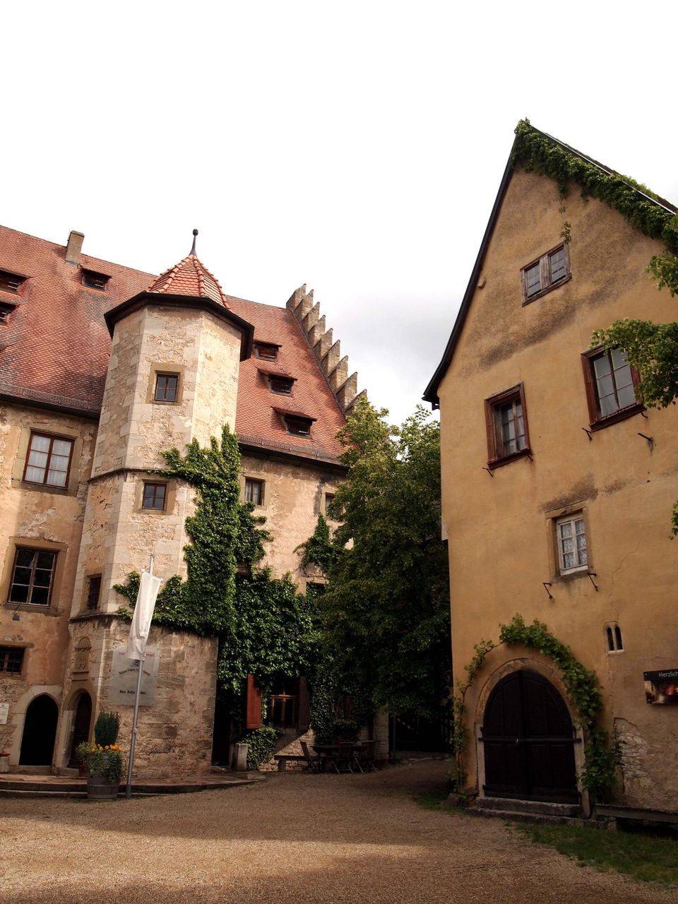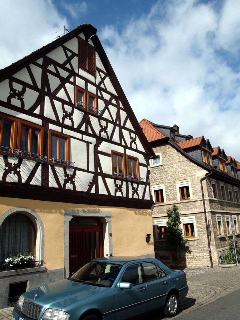 1枚目写真の建物は、ドイツの伝統家屋である「Fachwerkhaus:木組みの家」。塔の中には、3枚目の様に顔に見えるものも。。(気にしだすと、どの塔を見ても顔に見えてくるのでご注意を!!)