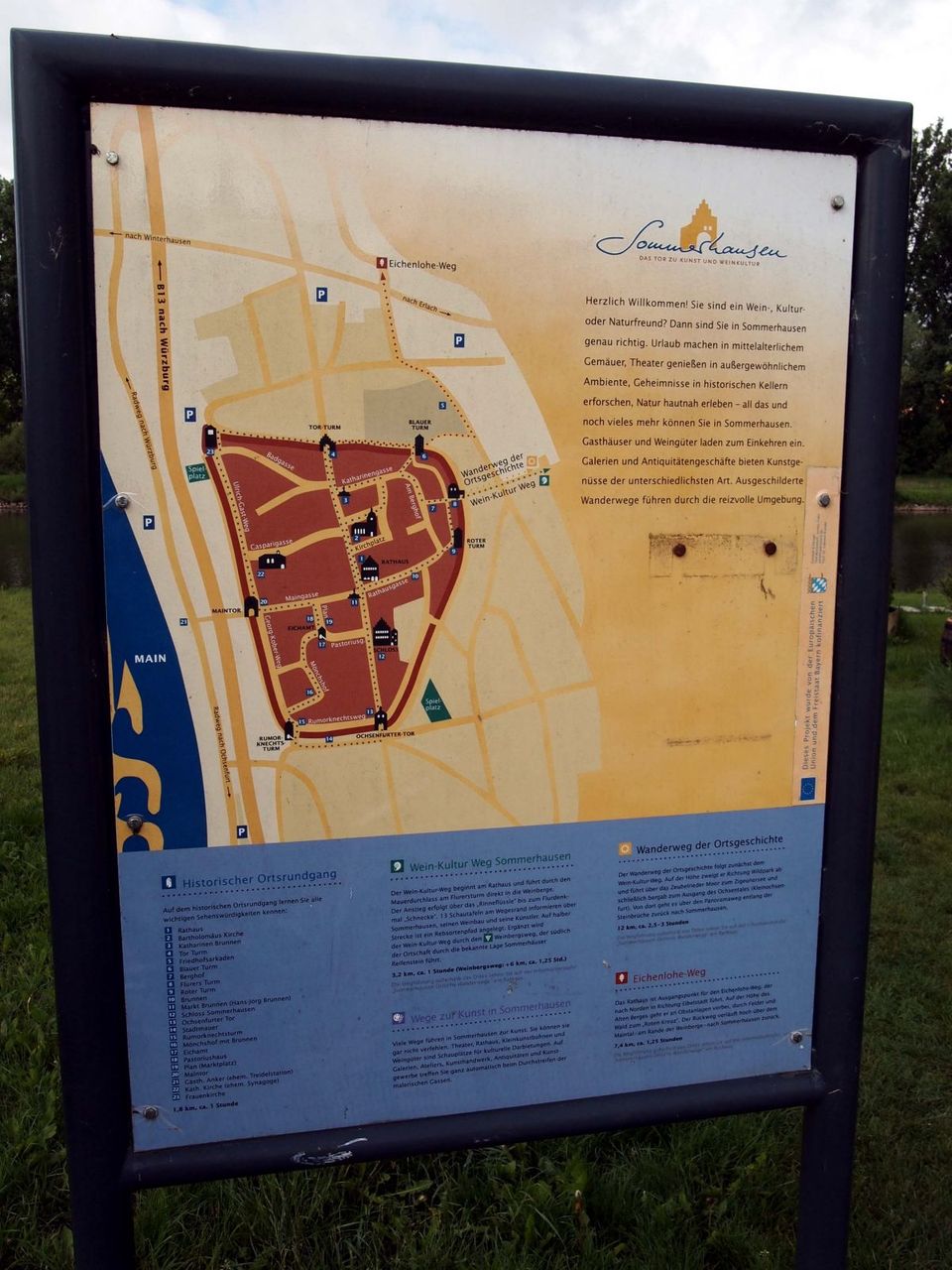 アイベルシュタットから2〜3km程走ると「ゾンマーハウゼン」に到着。Sommerとは夏を意味し、対岸には「Winter(冬)hausen」もある。この街も城壁がほぼ全て残っており、昔の建物も多く残る。ヴュルツブルグ近郊の小さな街で、個人的に一番気に入っている街。ワイナリーが点在し、またアーテストも住んでいて、小さなギャラリーがいくつもある。とーーってもお勧め!