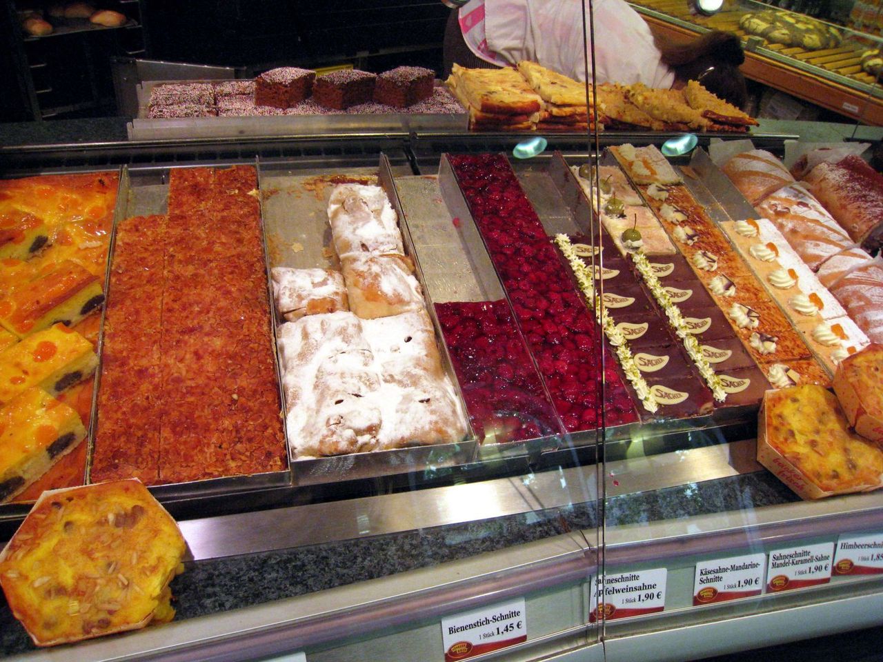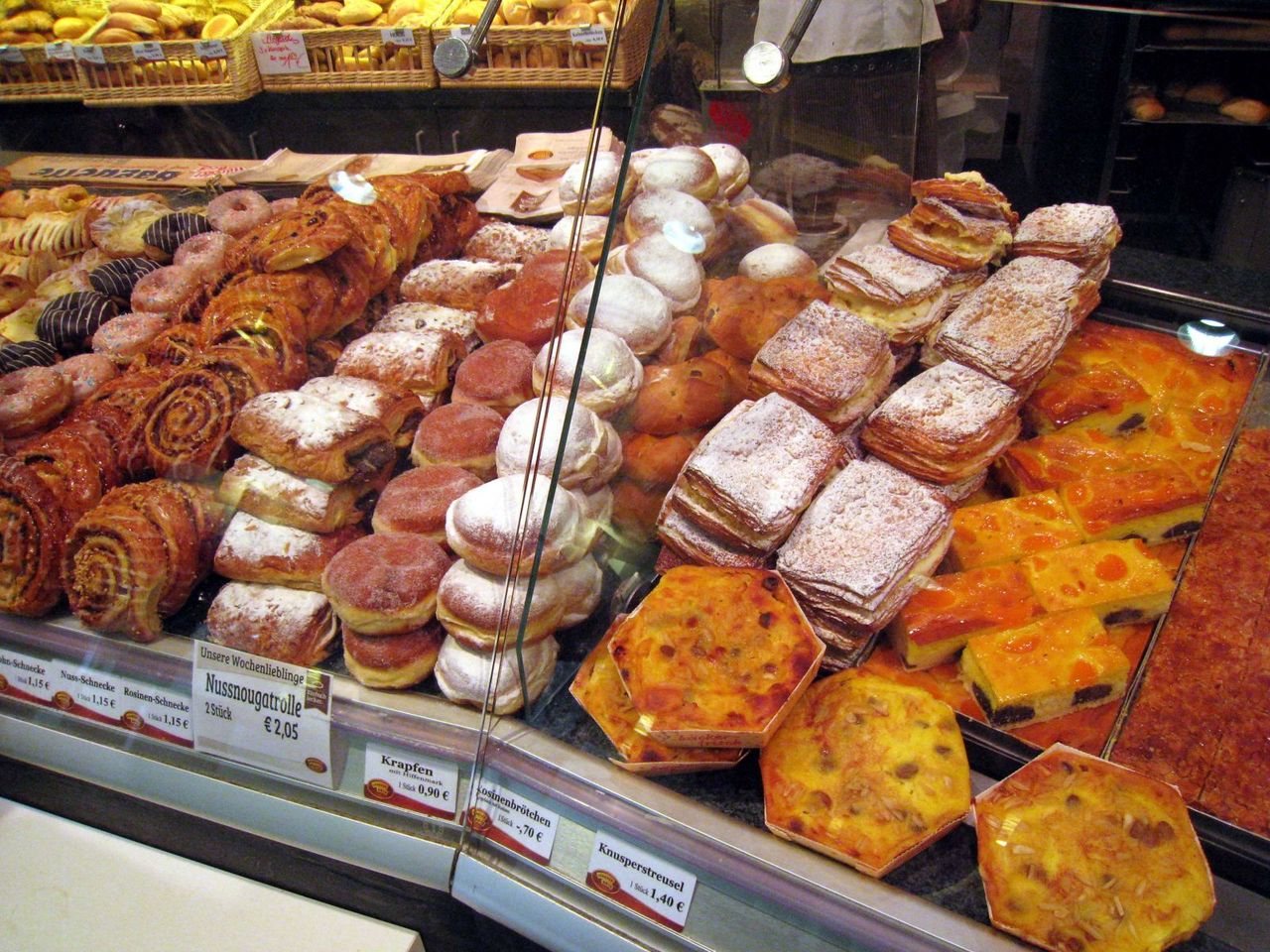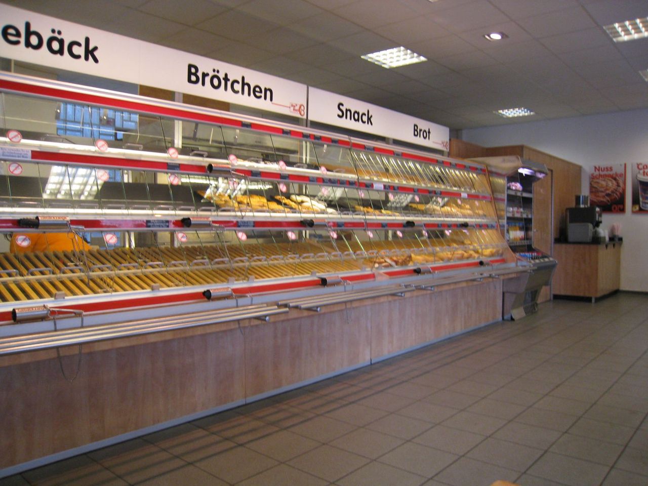 BrezelやRaugenstange(1枚目写真)などの定番もあり、デニッシュ系や惣菜パン・菓子パンなど、小さい店舗ながら割と品ぞろえが良い。また、保温がしっかりしていて、暖かい惣菜パンを食べることが出来るところはいいトコロ。味はまぁ、普通。値段はまぁ安い。Brezelで比較すると、駅の外にある「Ditsch」が上。