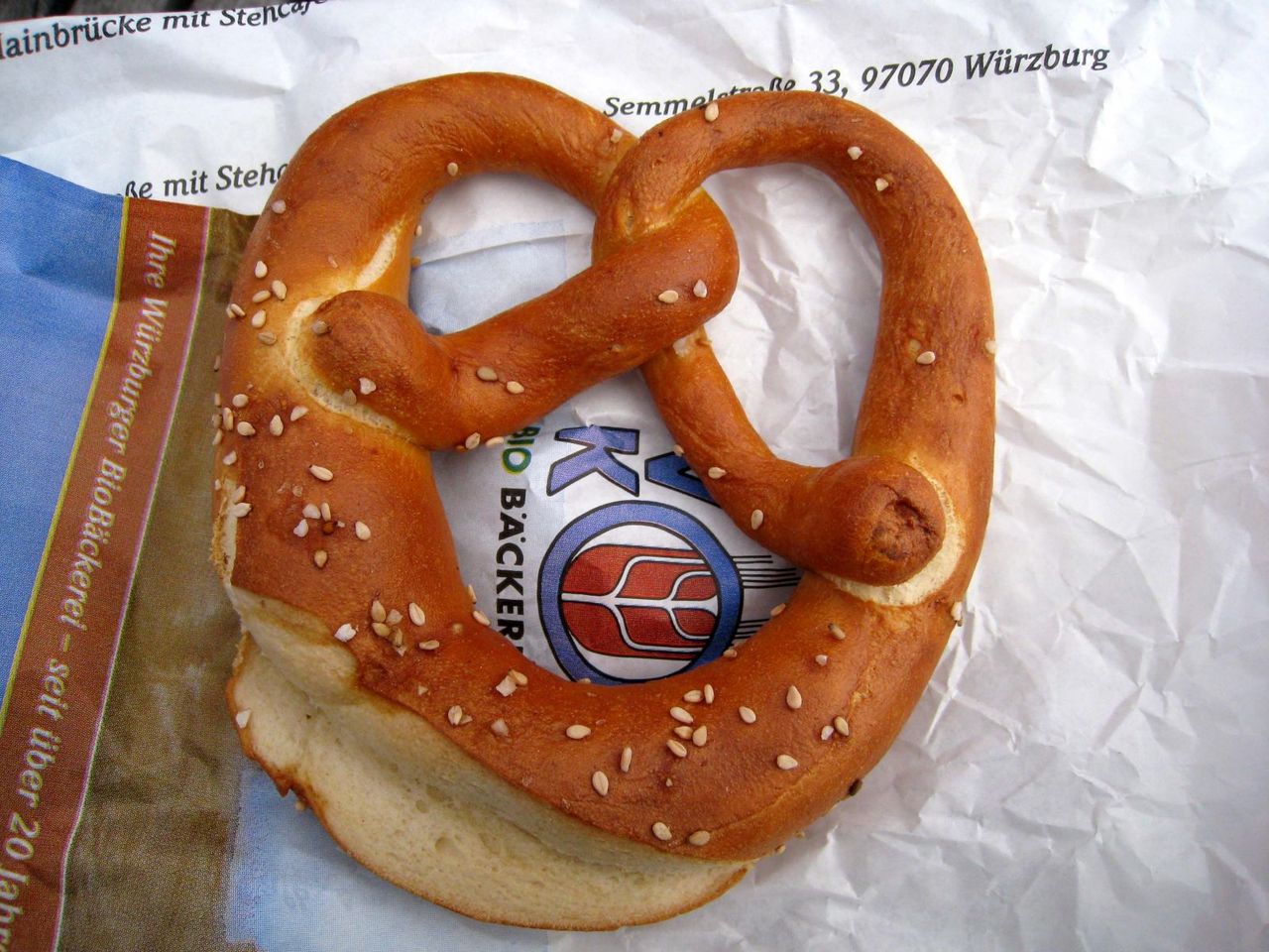 大きなBrezelは食べごたえばっちり。太いので、中が若干軽めなのが気になるところ。ここのお勧めはデニッシュ系。クロワッサンなど美味しいものが多い。ヴュルツブルグの中では値段は高め。(と言っても日本の普通のパン屋レベル。)