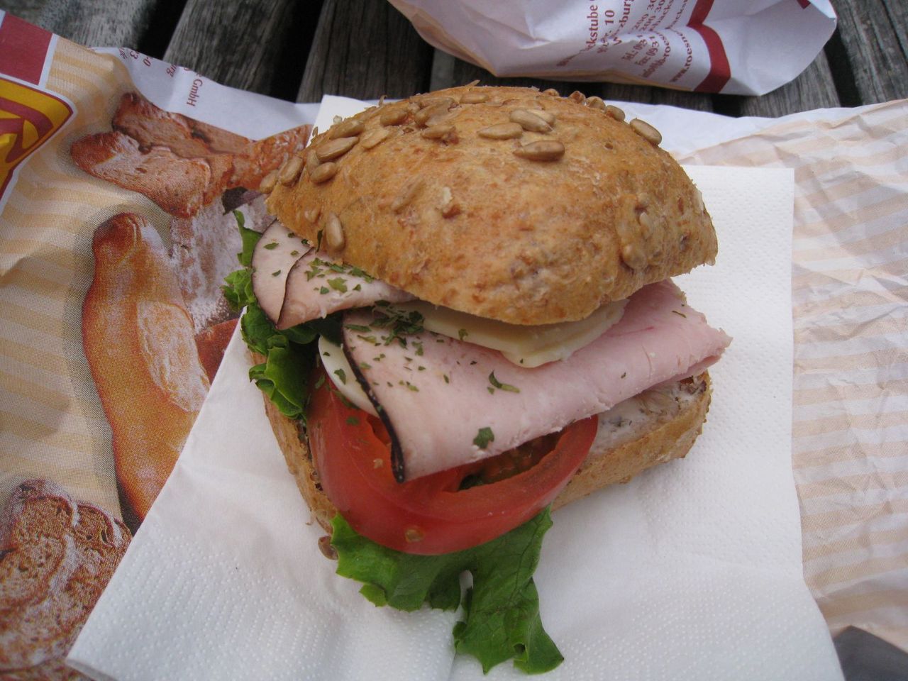 BIOのパンの中では一番美味しいと思う。Brezelはやや固めの食感。上にまぶされたゴマの風味が美味しい。2枚目写真は"Würzburger"というサンド。レタスなどの野菜もしっかり入っていて、全体的なバランスが良い。パンは小麦の味が前面に出ているまさにBIOの味。ちょっと高いけど、たまに行きたくなるパン屋。