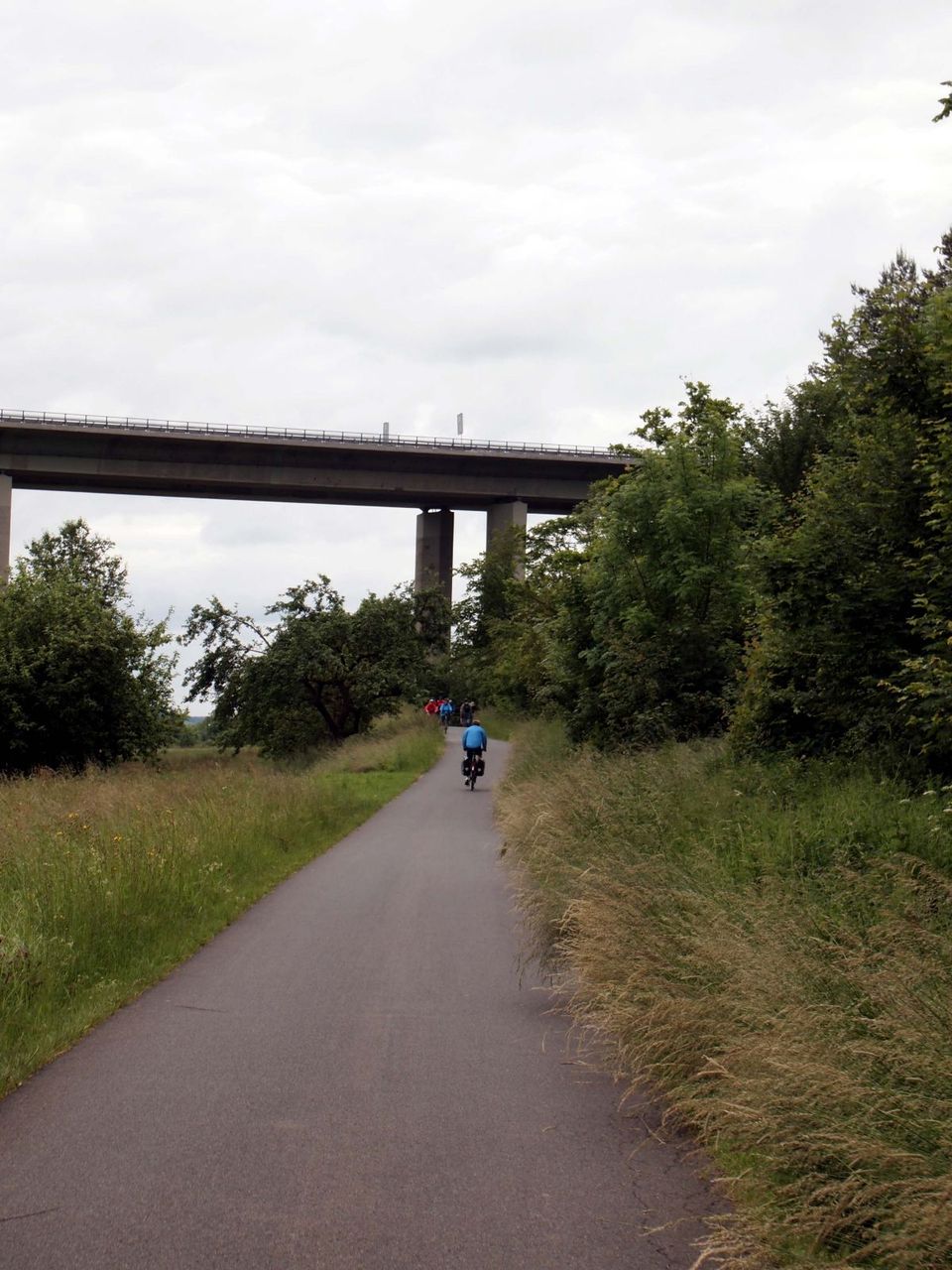 タウバー川。マイン川に比べるとだいぶ小さな川。とは言え、数百キロ流れる川で、下流の"Wertheim : ヴェルトハイム"でマイン川につながっている(Wertheimについてはこちら)。 ここからはタウバー川沿いにローテンブルグを目指すこととなる。しばらく行くと、小さな街"Hochhausen"へ。この辺りで出発してからだいたい50km程。