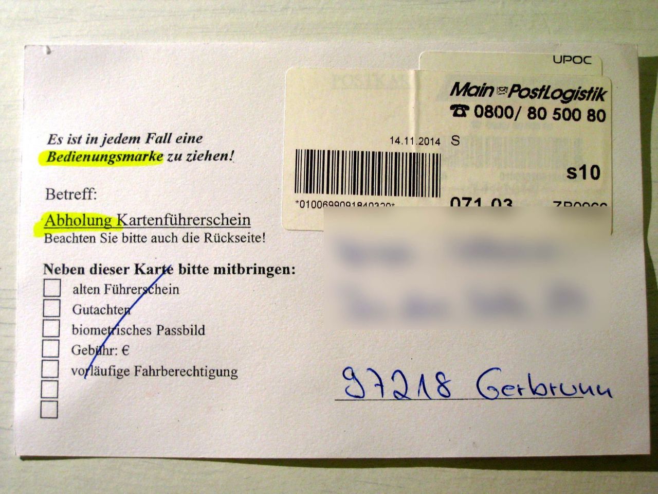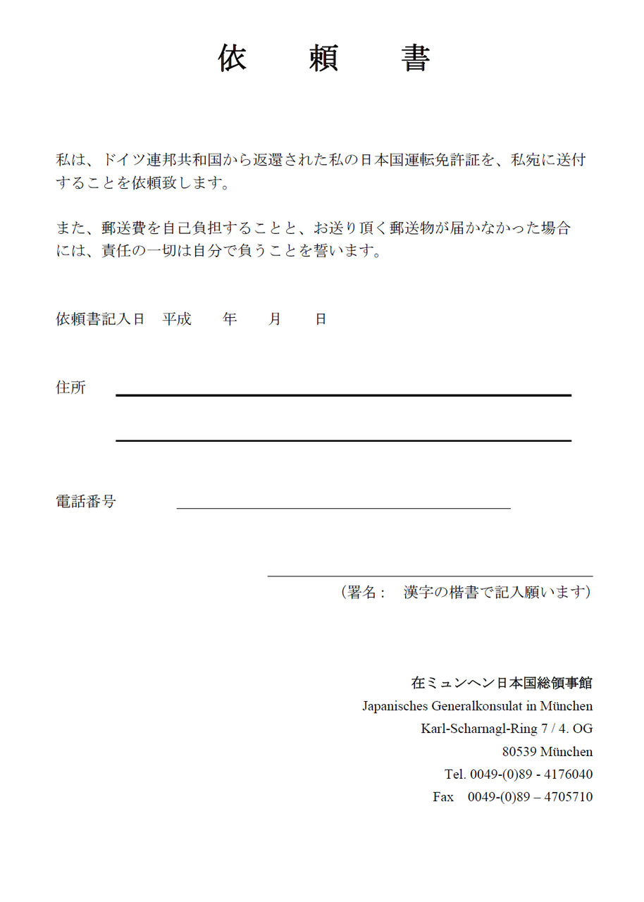 ¤Ï¤¬¤¤Ë¤ÏÌȵö¤ò°ú¼è¤ê¤Ë "Führerscheinstelle Haus2 No.412" ¤Þ¤ÇÍè¤ë¤è¤¦¤Ë¡¢¤È½ñ¤«¤ì¤Æ¤¤¤ë¡£