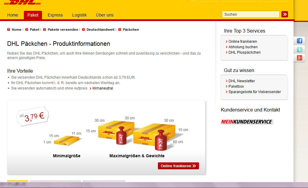 DHL Päckchen ¤Î¥Ú¡¼¥¸ ¤Ï¤³¤Á¤é