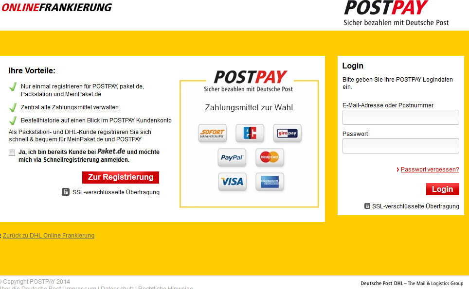 ½é¤á¤Æ¤Î¾ì¹ç¤Ï¡¢»Ùʧ¤¤¥·¥¹¥Æ¥à¡§POST PAY ¤Ø¤ÎÅÐÏ¿¤¬É¬Íס£º¸¼Ì¿¿²èÌ̤ˤơ¢¥Á¥§¥Ã¥¯¥Ü¥Ã¥¯¥¹¤Ë¥Á¥§¥Ã¥¯¤·¤Æ¡¢"Zum Registrierung"¤ò¥¯¥ê¥Ã¥¯¡£¼¡¤Î²èÌ̡ʱ¦¼Ì¿¿¡Ë¤Ç¡¢¥á¡¼¥ë¥¢¥É¥ì¥¹¤È¥Ñ¥¹¥ï¡¼¥É¤òÆþÎϤ·¤Æ¡¢ÅÐÏ¿¤¹¤ë¡£