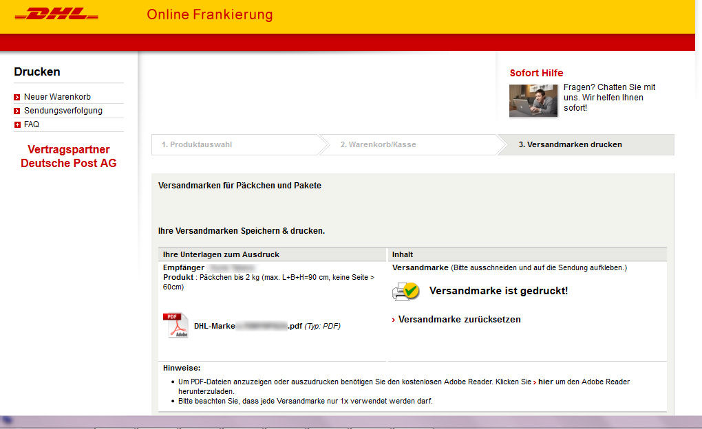 ¤Þ¤º¡¢¡ÖOnline frankieren ¡§ ¥ª¥ó¥é¥¤¥ó»Ùʧ¡×¤òÁªÂò¡Êº¸¼Ì¿¿¡Ë¡£¼¡¤Ë¡¢¡Ö¿·µ¬Ç㤤ʪ¤«¤´¡×¤ò³«¤¯¤«Ê¹¤«¤ì¤ë¤Î¤Ç¡¢¤½¤Î¤Þ¤Þ¥¯¥ê¥Ã¥¯¡£¡Ê±¦¼Ì¿¿¡Ë
