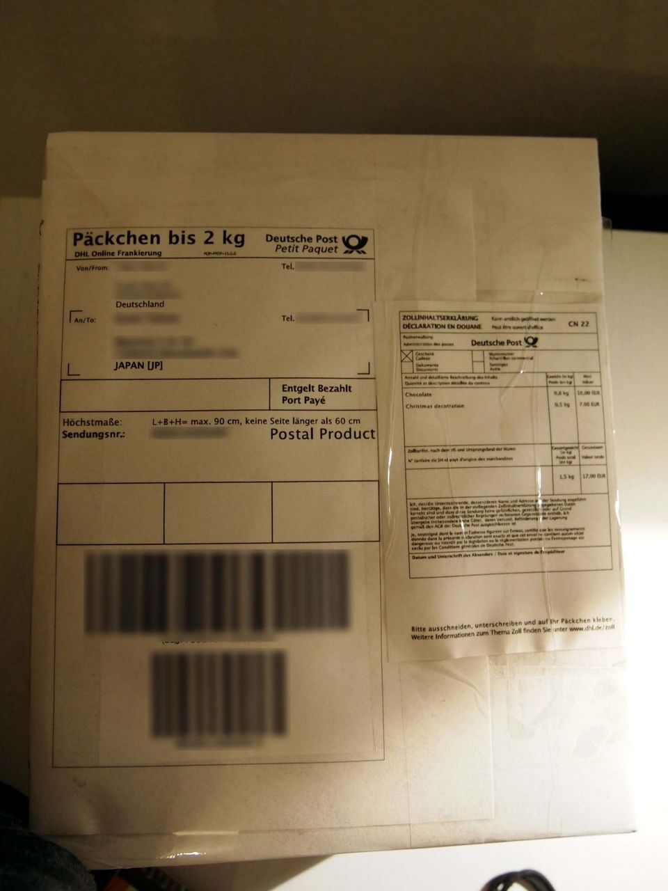 2kg°Ê²¼¤Î²Ùʪ¤òÁ÷¤ë¾ì¹ç¤Ï"Päckchen"¡¢¤½¤ì¤è¤êÂ礤¤²Ùʪ¤Ï"Packet"¤ËʬÎव¤ì¤ë¡£ÃÍÃʤÏ"Päckchen"¤À¤È€15.79¡£¤½¤Î¾¤Ï¾å¤Î¼Ì¿¿¤ÎÄ̤ꡣ