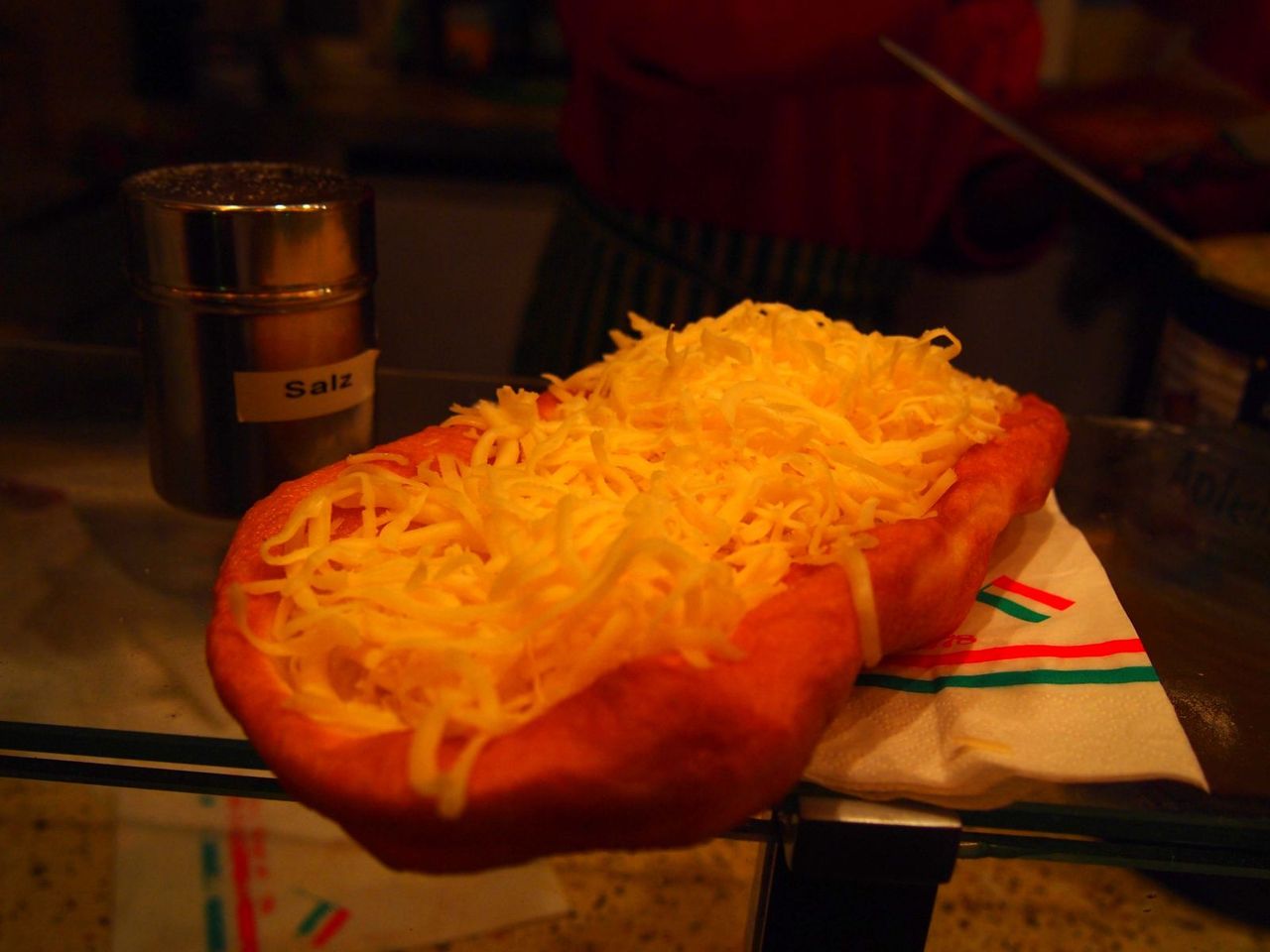 そして、すっかり定番になってしまった"Feuerzangenbowle(フォイアーツァンゲンボウレ)"を飲んだり、長蛇の列が出来ていた"Lango Länge(ランゴレンゲ)"なる、揚げた生地に具材がのっかったもの、を食べたり。。Lango Längeは長蛇の列が出来ていただけのことはあり、美味しかった!