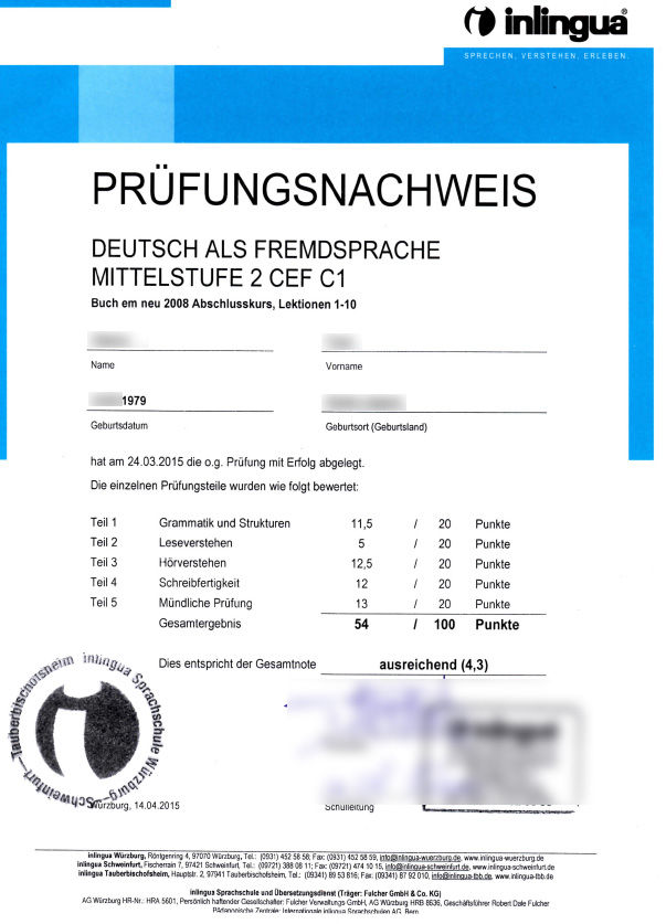 授業自体には正直ついていけていなかったし、単語力と会話力の欠如は相当なもので、逆に言うと良くこれで合格できたな、と言うのが正直な所。気持ち的には一番点数の悪い読解:Lesenはもっと出来たつもりだっただけに、その点も含めてしっかり受け止めなければいけないのだろう。