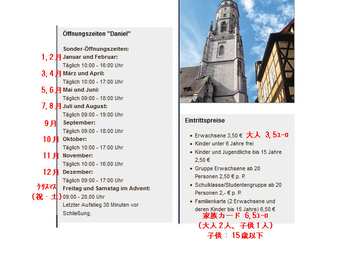 この街のシンボルには石段で登ることが出来る。オープン時間、値段は2枚目参照(HPはこちら)。