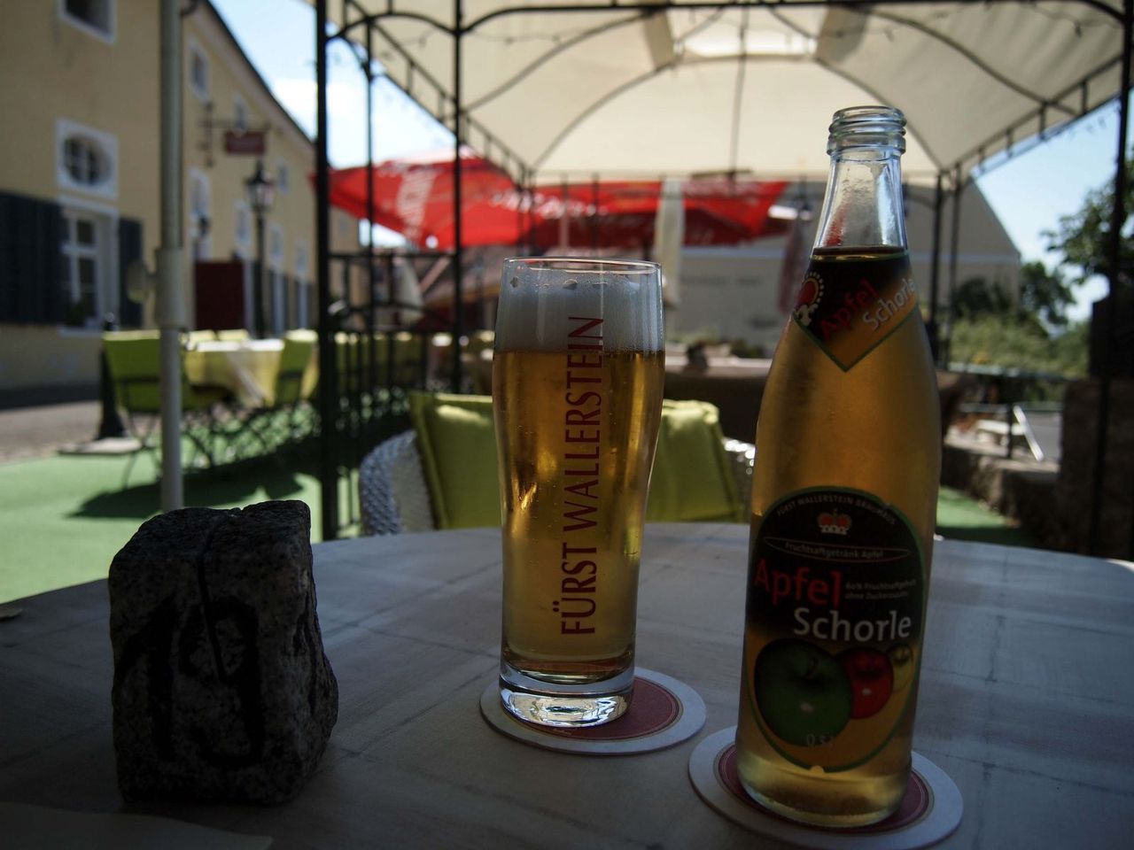 併設のレストランではもちろんビールが飲める。が、今回は車なのでWallersteinのApfelschorle(アップルショーレ)を。ビールを味見したけど、、うまかった…。。