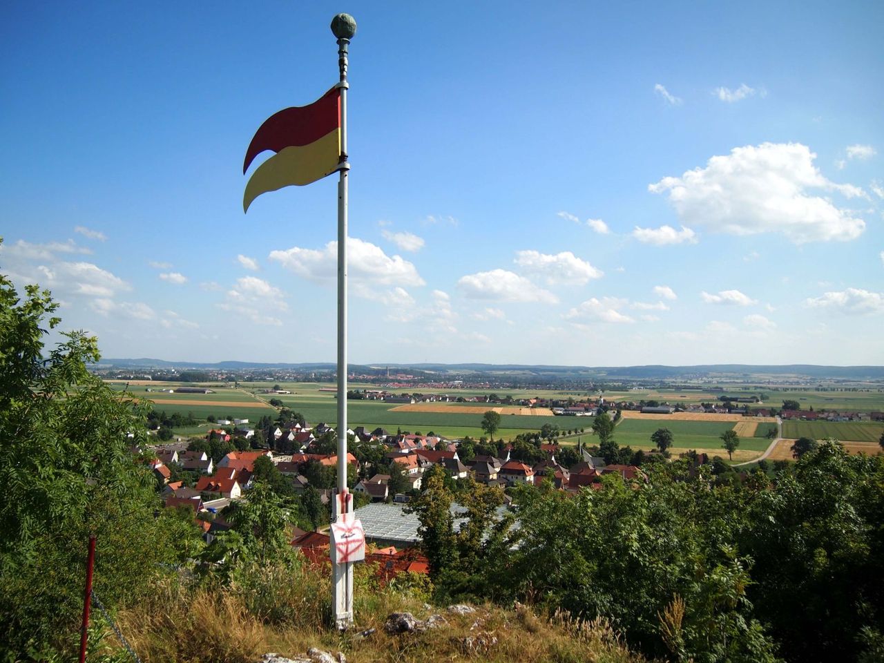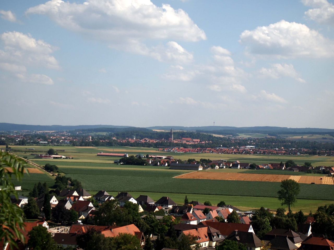 Burgの中央にある岩(Wallersteiner Felsen)からはのどかな風景が。遠くに見える塔はネルトリンゲンの聖ゲオルク教会。