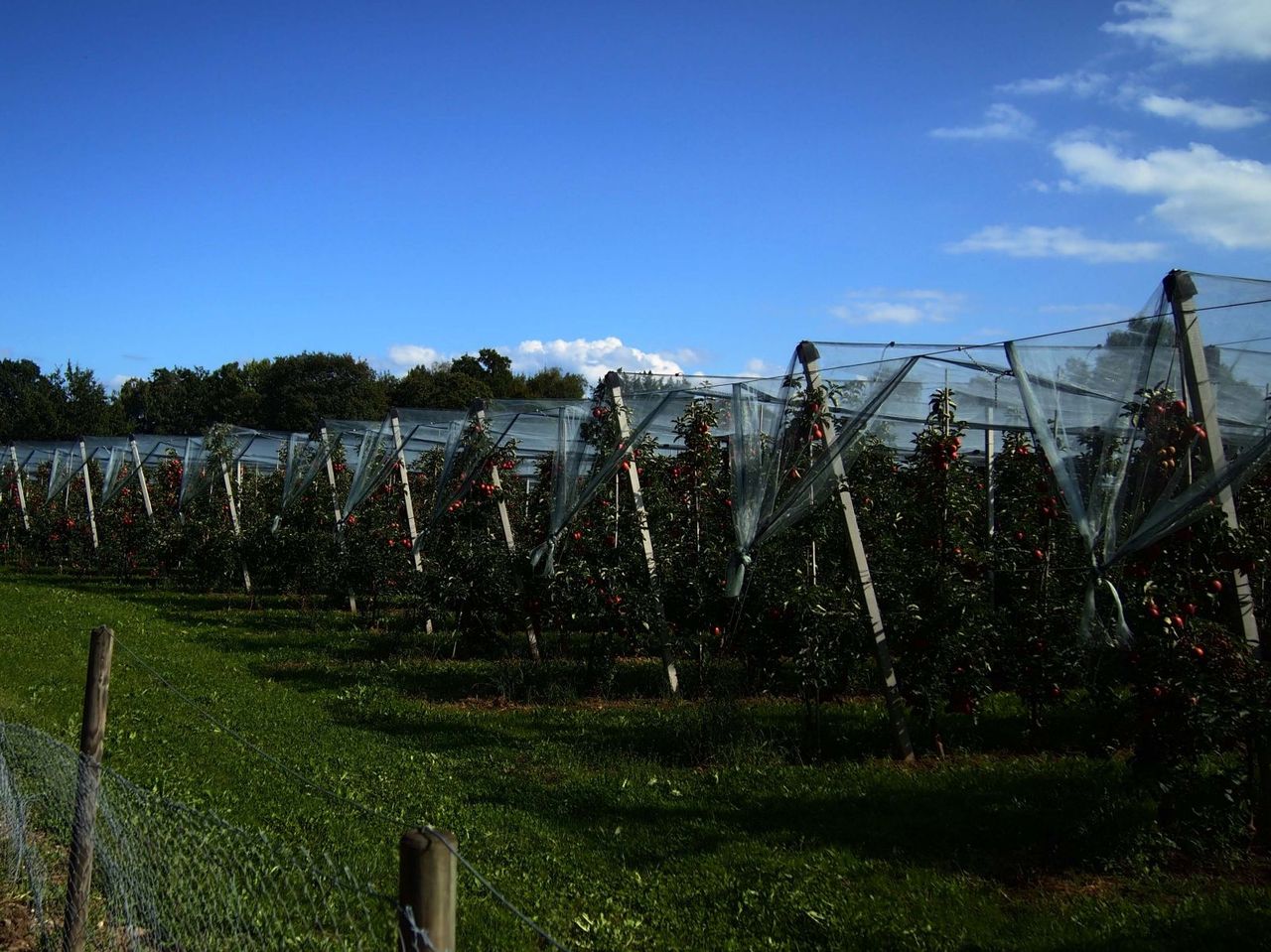 相変わらず続くフルーツ畑。リンゴはほとんど摘果していない様子。木の選定方法も日本と全く異なっていてとても興味深い。