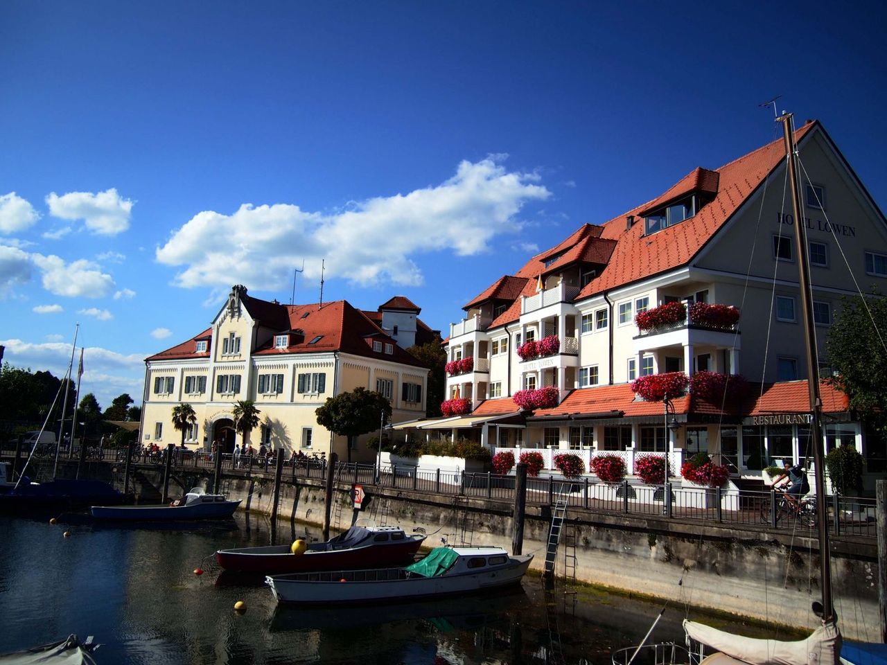 ボーデン湖沿いでは割りと大きく、古くから栄えていた街。駅から降りると、これまでのドイツの街とも少し雰囲気の違う街並みが出迎えてくれる。すぐそばの港周辺には石造りやレンガ造りの雰囲気ある建物が並ぶ。