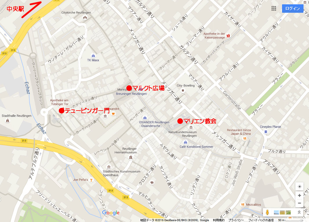 Stuttgart : ストゥットガルトから電車で40分前後、Tübingen:テュービンゲンの手前の街、Reutlingen:ロイトリンゲン。(Tübingenについてはこちら参照。)