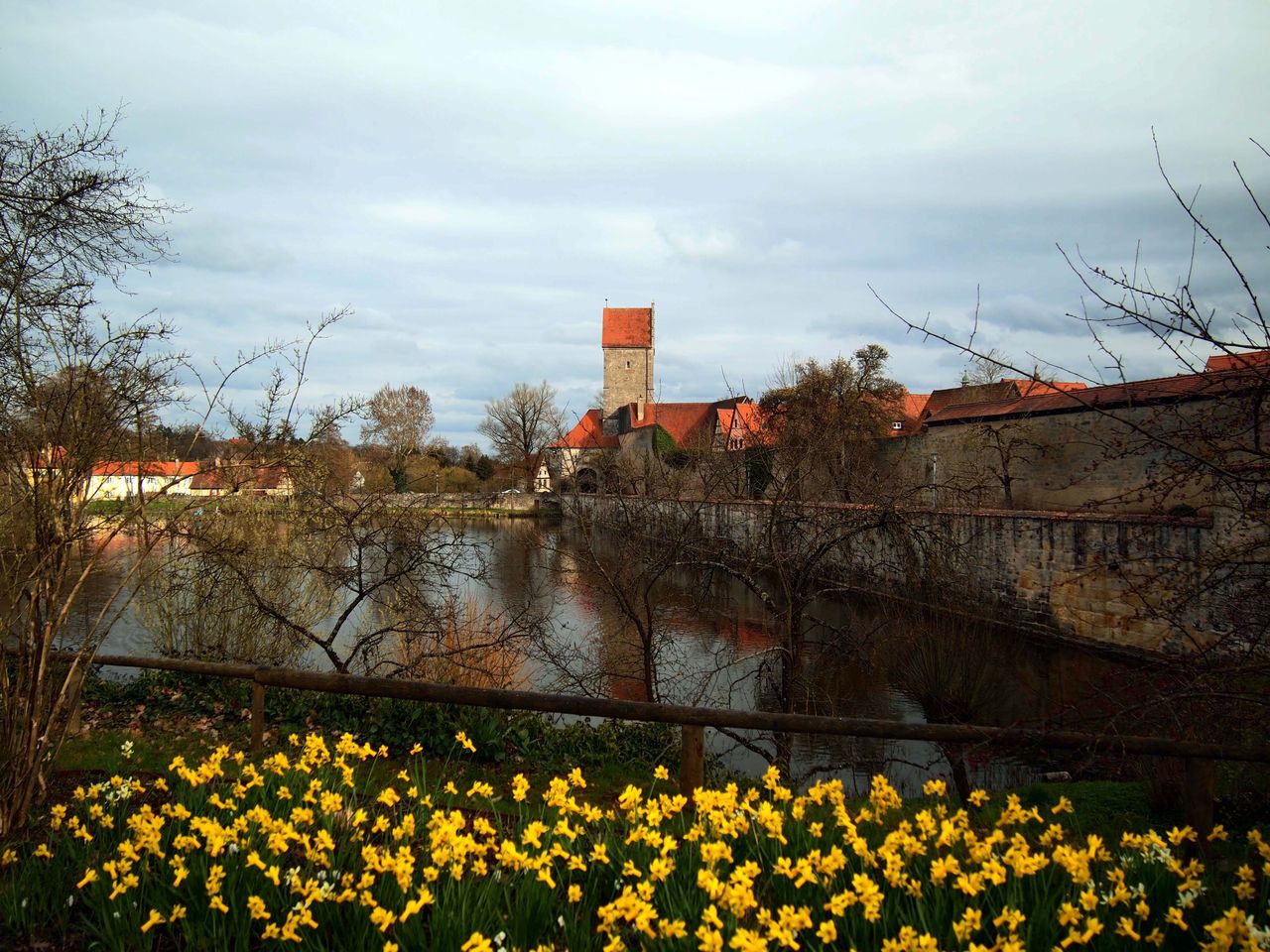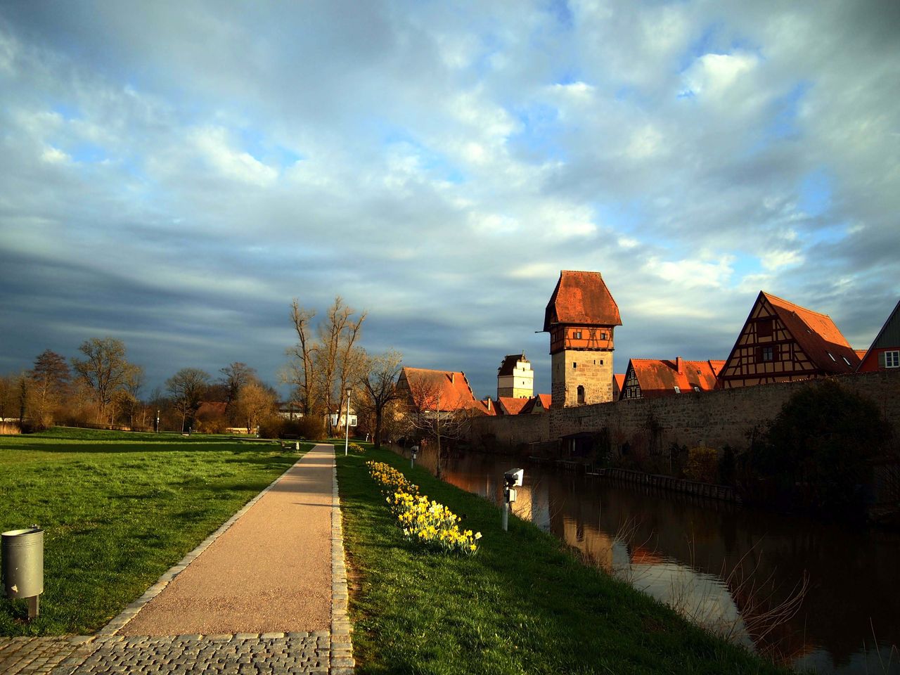 自転車で走っていく見えてきたのは城壁に囲まれた静かな街"Feuchtwangen"。