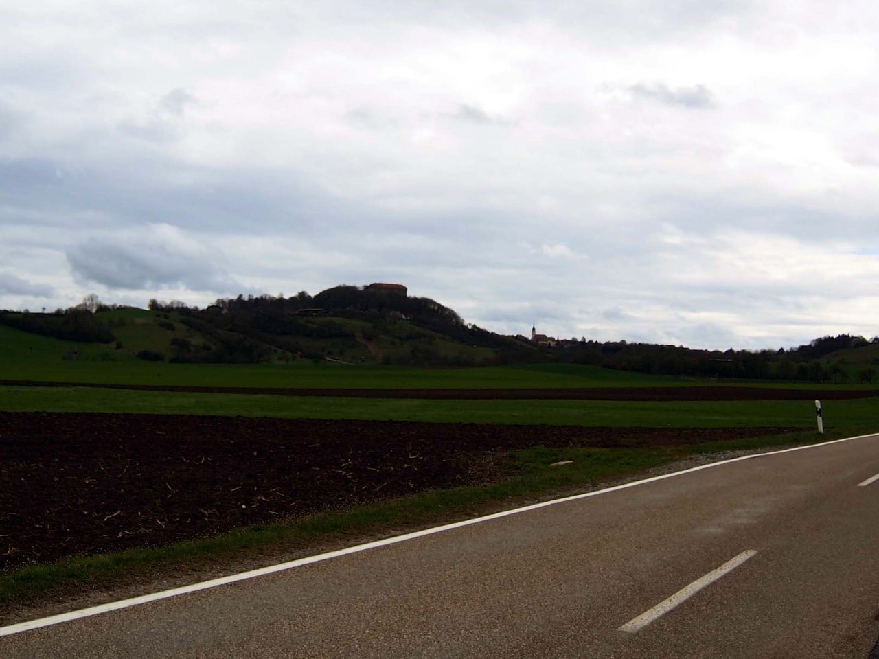 しばらく進むと丘が見えてきて、その頂上に宮殿が見えてくる。これが目的地の"Schillingsfürst"。
