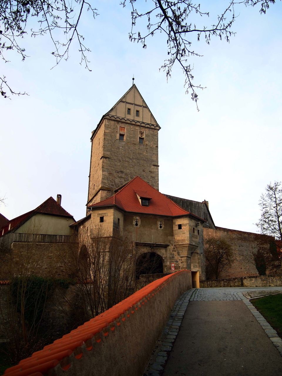 旧市街の周りは畑や公園、池で囲まれていて、かなりのんびりとした雰囲気が漂っている。続く城壁とニョキニョキと建つ塔。その形も色々なものがあって散歩していてとても楽しくなる。2枚目写真は地図の右下に位置する"ネルトリンゲン門"。
