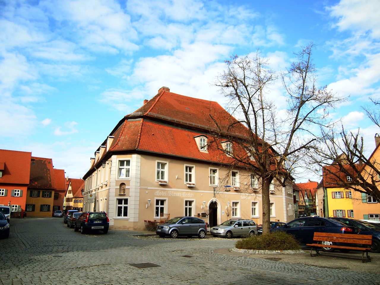 今回宿泊したホテル"Blauer Hecht"。旧市街にある四つ星ホテルだけど値段はお手頃で、中の雰囲気もなかなか良かった。部屋やサービスは基本的だったけど、落ち着いた雰囲気はなかなかのもの。ちなみにこのホテルの前にロマンティック街道バスの停留所がある。