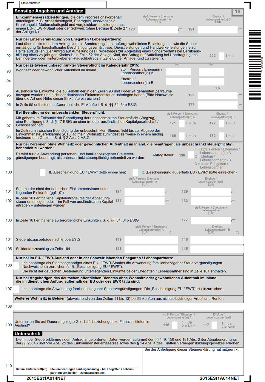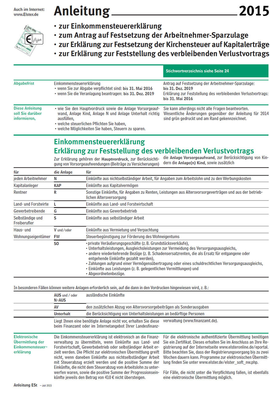 手引書は "Anleitung zur Einkommensteuererklarung 2015" をダウンロード。こちら(PDF)。