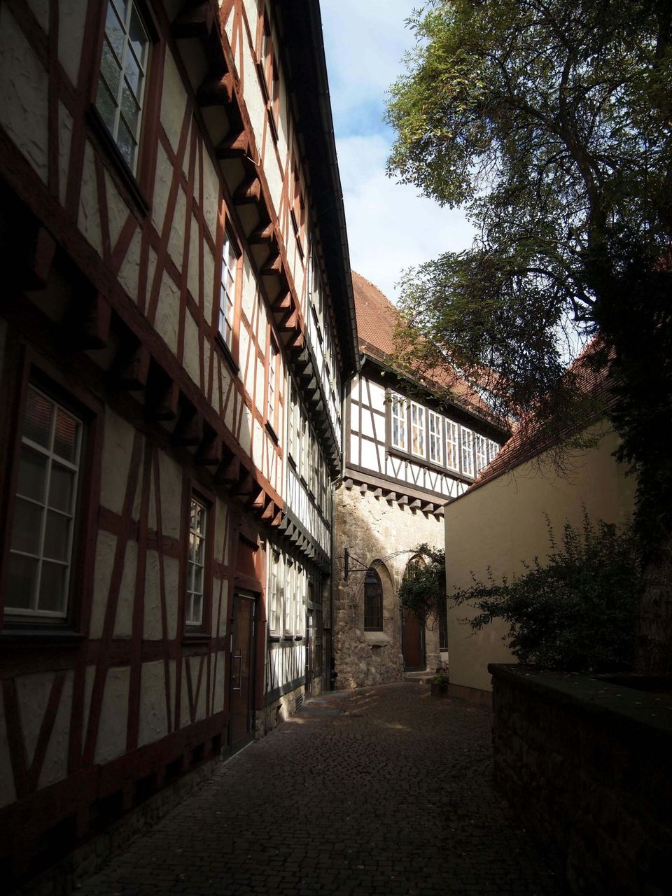 ¾¯¤·µì»Ô³¹¤ÎÃæ¤ØÆþ¤Ã¤Æ¤¤¤¯¤ÈÁá® "Fachwerkhaus" ¤¬·Þ¤¨¤Æ¤¯¤ì¤ë¡£Ï©ÃÏ¤ËÆþ¤ë¤È¡¢¤½¤ÎÊ·°Ïµ¤¤Ï¤µ¤é¤Ë¿¼¤Þ¤ê¡¢¿§¤ó¤Ê¥¿¥¤¥×¤Î·úʪ¤ò¸«¤ë¤³¤È¤¬½ÐÍè¤ë¡£