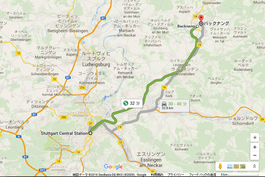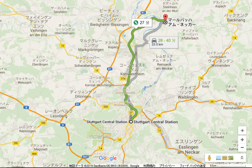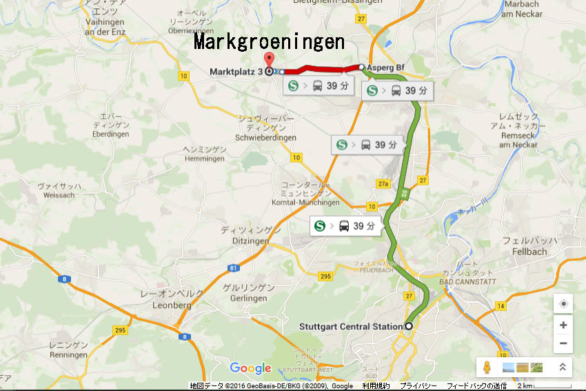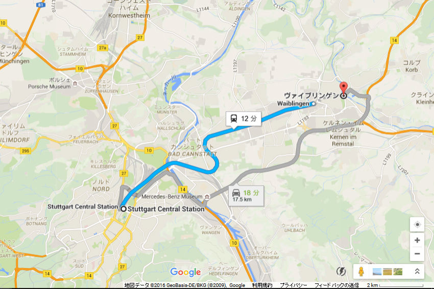 Google map¤Ï¤³¤Á¤é¡£Stuttgart¤«¤éS-Bahn¤Ç32ʬ¡£±Ø¤«¤éµì»Ô³¹¤Ï¾¯¤·Î¥¤ì¤Æ¤¤¤ë¡£