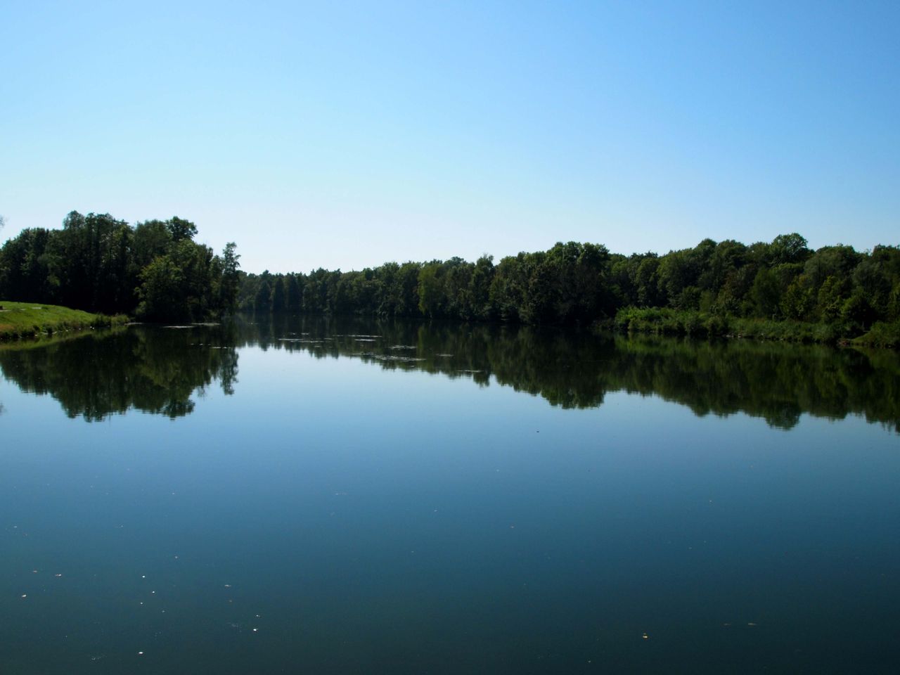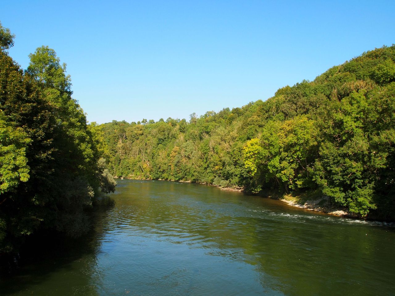 このあたりのドナウ川はまだヴュルツブルグ辺りのマイン川と同じくらいの川幅でのんびり流れている。ドナウ川もマイン川と同じく大陸の川らしく、透明度は無い。。けど、空と水と木々のコントラストは思わず息を飲む美しさである。