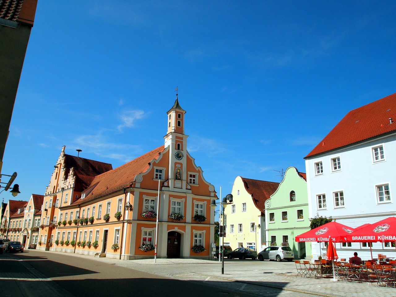 マルクト広場に立つ市庁舎は広場の石畳とのコントラストもなかなかのもので、モダンさすら感じる。中心部は石畳が続き、自転車は走りにくいけど雰囲気は素晴らしい。