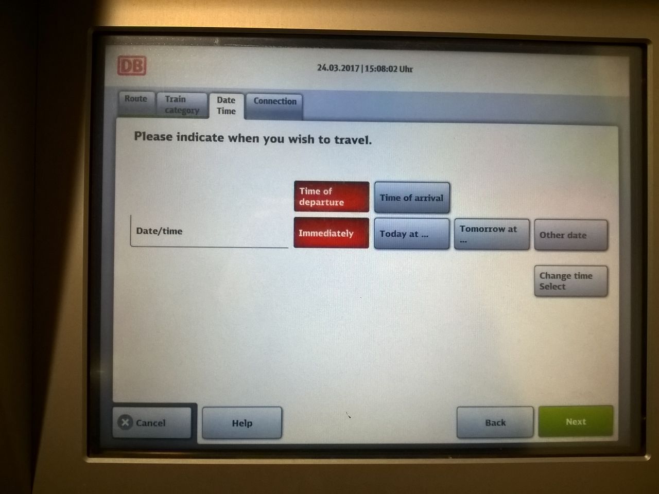 ȯÃå»þ´Ö¤ÎÁªÄê¡£½Ðȯ»þ´Ö¤ÎÀßÄê¤Ï¡ÖTime of departure¡×¡¢ÅþÃå»þ´Ö¤ÎÀßÄê¤Ï¡ÖTime of arrival¡×¡£