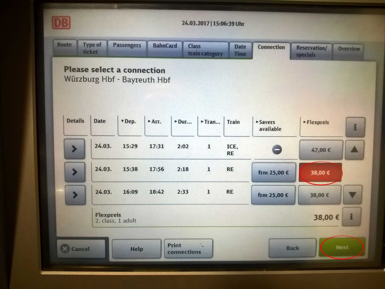 ¤³¤³¤Ç¤Ï¡¢ICE¤ò»È¤ï¤ºRE¡Ê²÷®¡Ë¤ò»ÈÍѤ¹¤ë¤¿¤á¡¢£²ÈÖÌܤÎÅż֤òÁªÂò¡£ÃÍÃÊ "38,00EUR" Éô¤òÁªÂò¡£