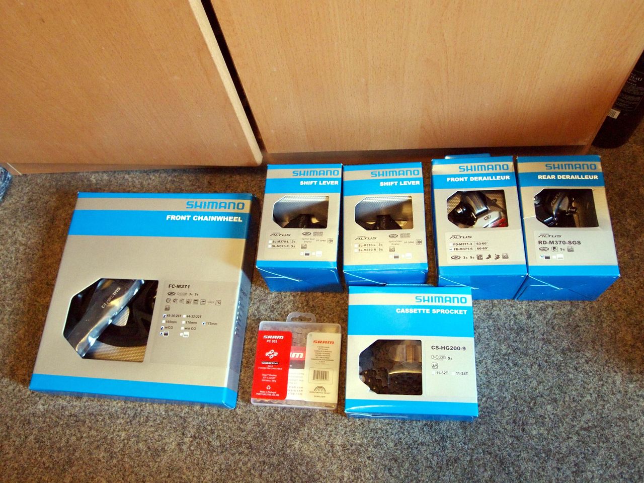 出来ればShimano105(ロード用 中・上級モデル)が良かったが、だいぶいいお値段するので、今回はセット売りされていて手頃なALTUS(MTB用・初級モデル)で断念。。