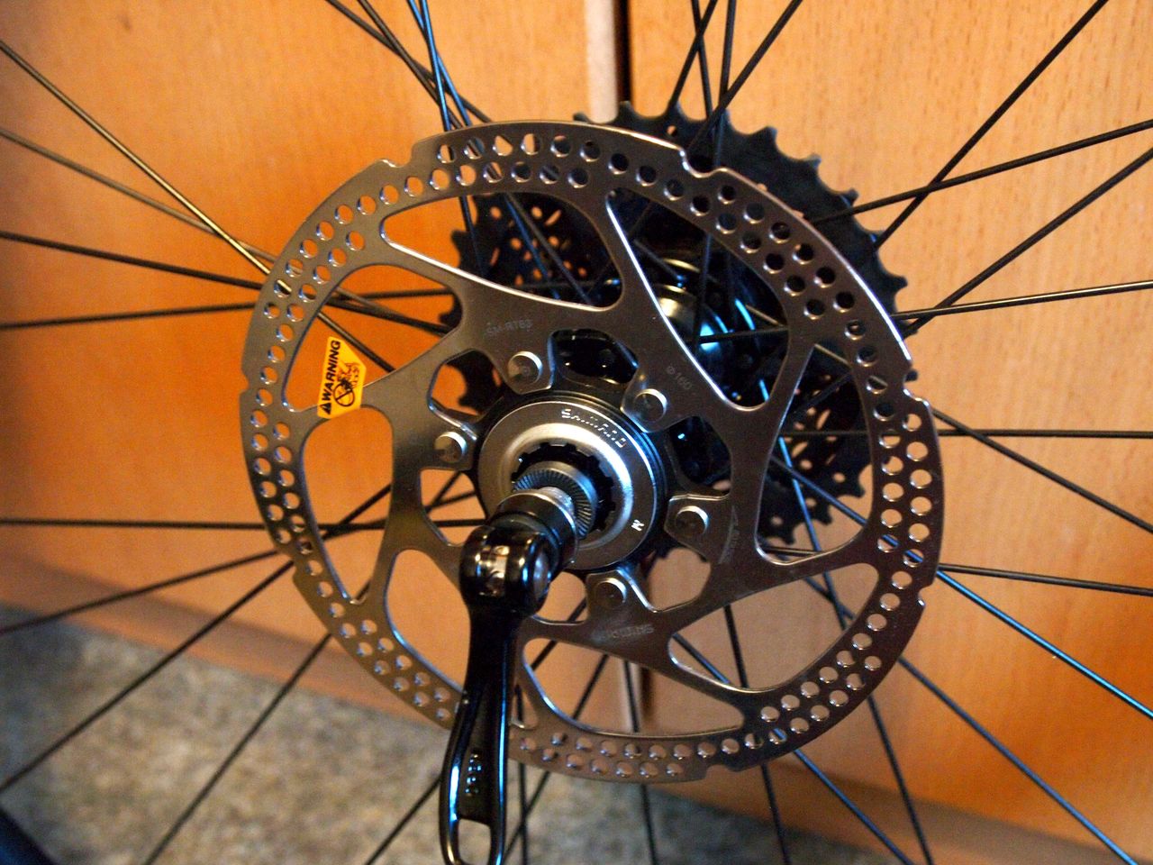 アルミフレームでもちろんディスクブレーキ仕様。ブレーキの規格はInternational Standard(IS2000)。この時はディスクブレーキの規格がややこしいことにまだ気づいていない。後で少し悩むことに。。(今買うならPost Mount(ポストマウント)規格の方が絶対おすすめ。)