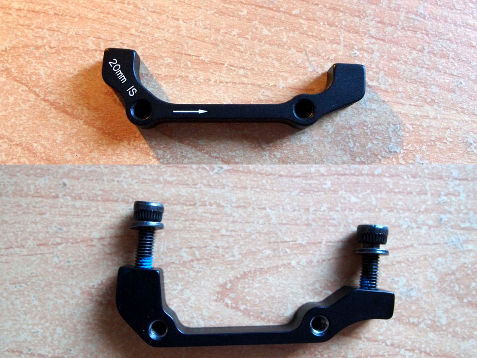 また、取付についてもIS(International Standard)とPM(Post Mount)の2種類があるため、フレームに合わせる必要がある。今回は、ISのフレームにPMのキャリパーを取り付けたため、IS-PM変換用のアダプタが必要となった。