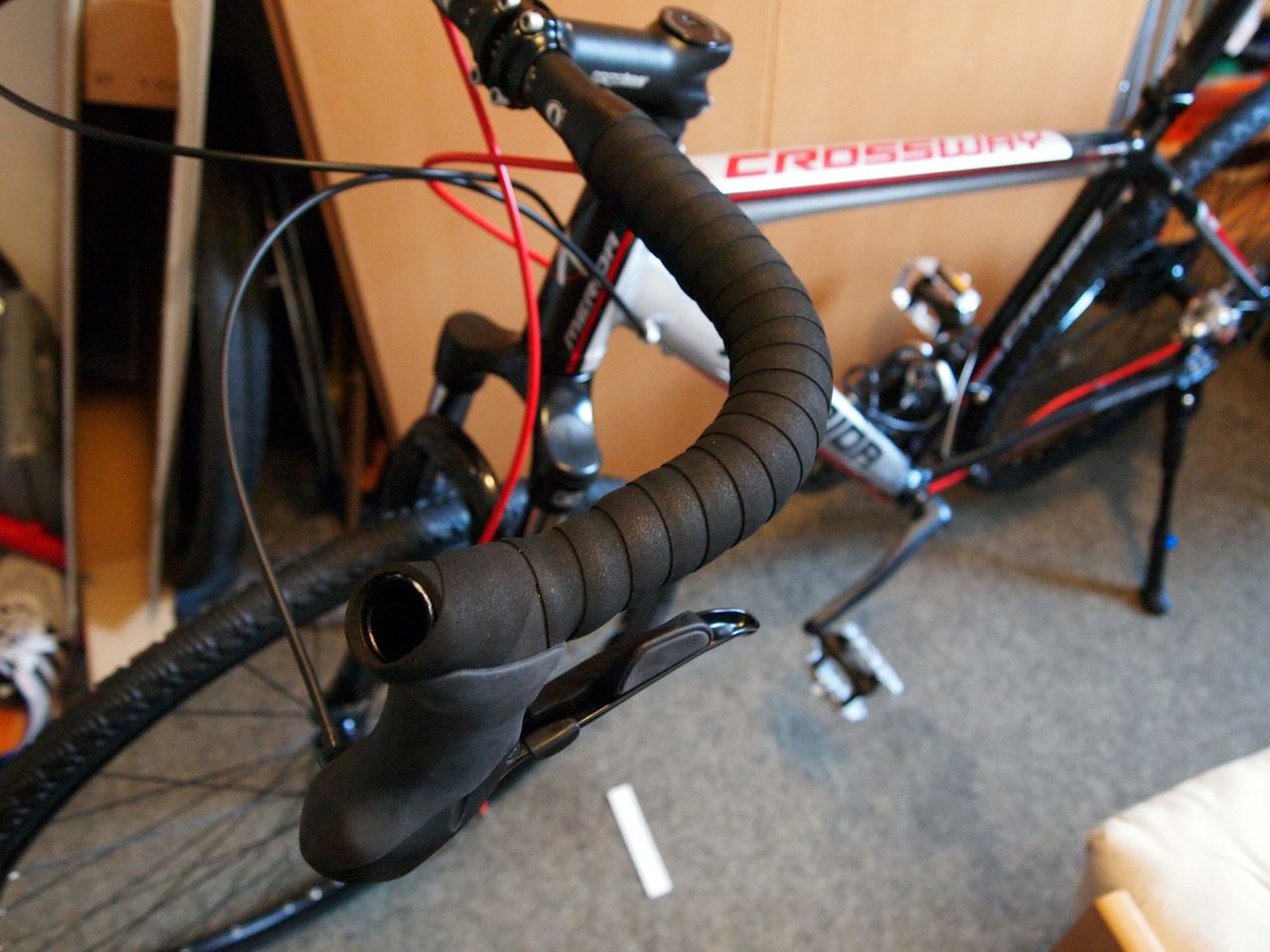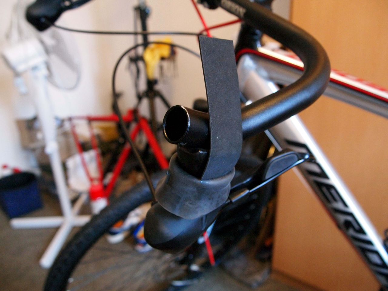 取り付け完了。続いてハンドルテープの取り付け。