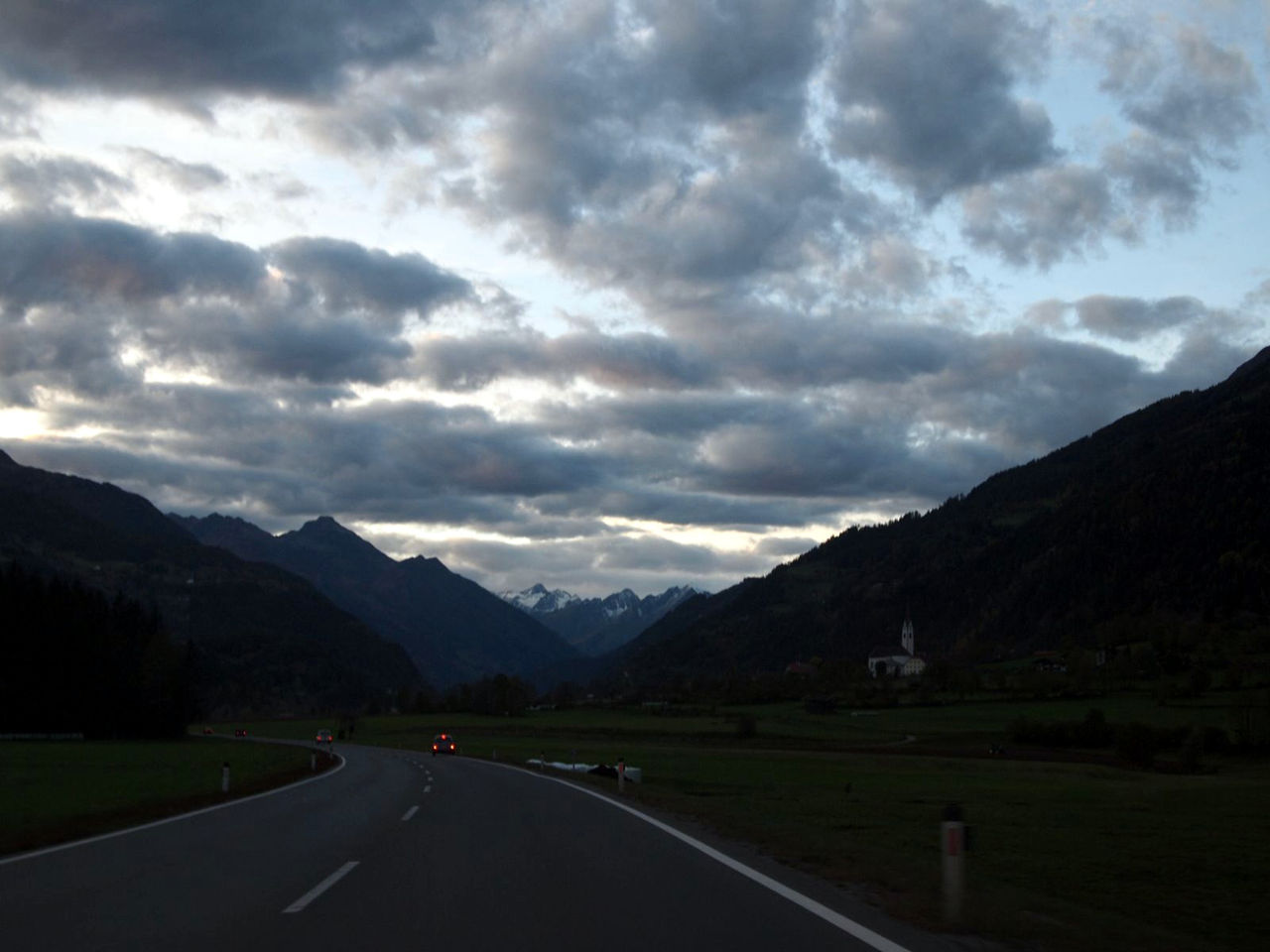 アルペン街道出発の街 "Heiligenblut:ハイリゲンブルート" 。この奥にグロースグロックナー山がそびえているはずが、残念ながら頂は雲に隠れている。しかし、この景色は最高すぎる。。