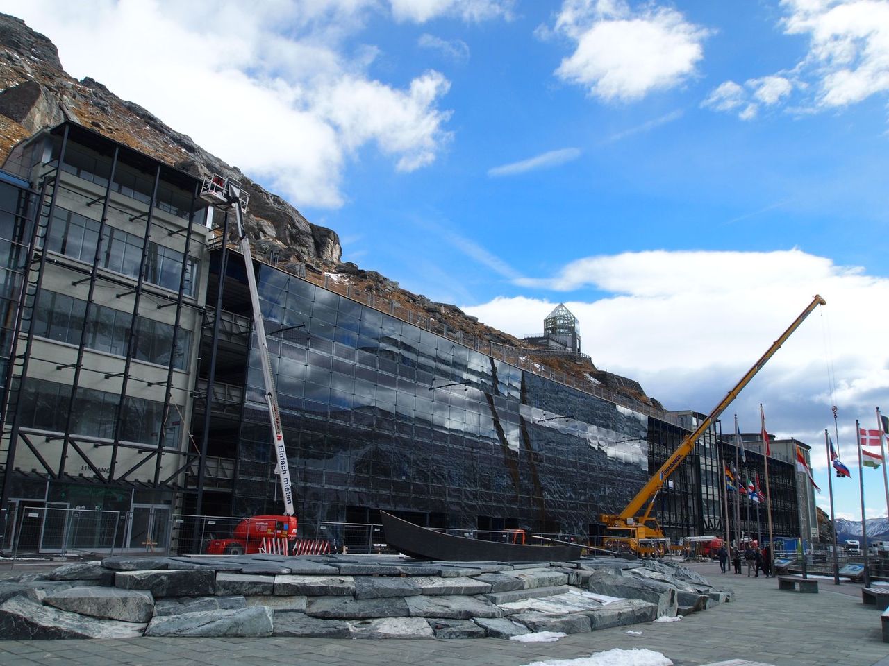 展望所の目の前がオーストリア最高峰 "グロースグロックナー山"(1枚目写真の左側中央辺り)。残念ながら山頂は雲で見えず。ちなみに、標高は3798m。富士山とほぼ同じ高さ。そしてこの展望台が2400m弱程。2枚目写真はもちろんGletscher:グレッチャー(氷河)。ドイツ最高峰"Zugspitze"(ブログはこちら)以来、人生二度目の氷河。
