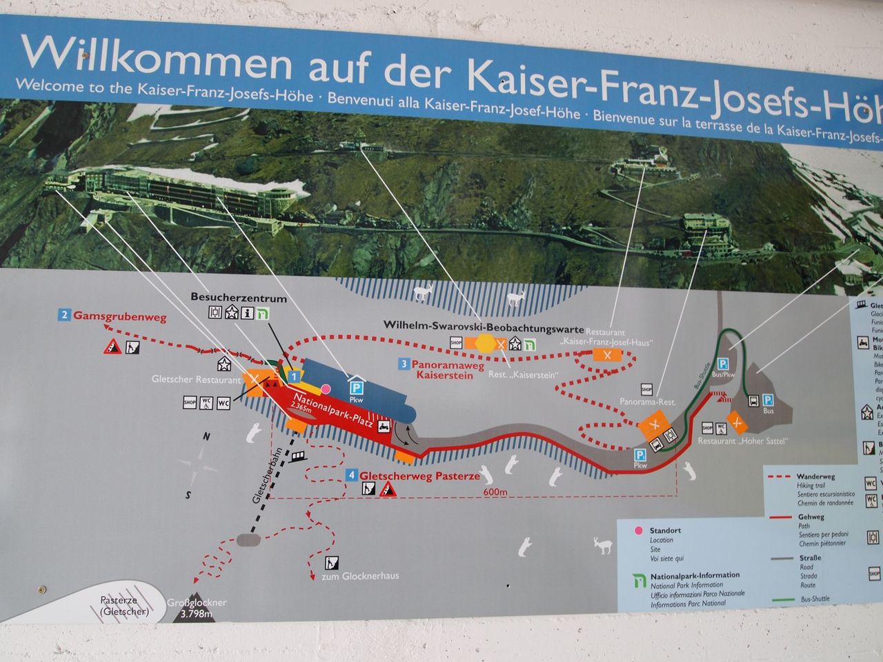 一番の展望ポイント、"Kaiser Franz Josefs Höhe:カイザーフランツヨゼフ展望所" へ。あまりに立派な立体駐車場でビックリ。夏の賑わいはかなりのものなんだろう。