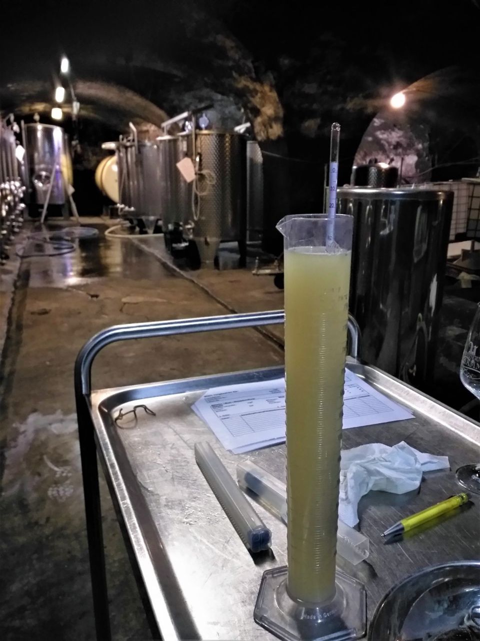 大体2週間〜1か月かけて発酵させるが、その間は温度管理(17℃〜19℃)をしつつ定期的に糖度(エクスレ)を測定する。