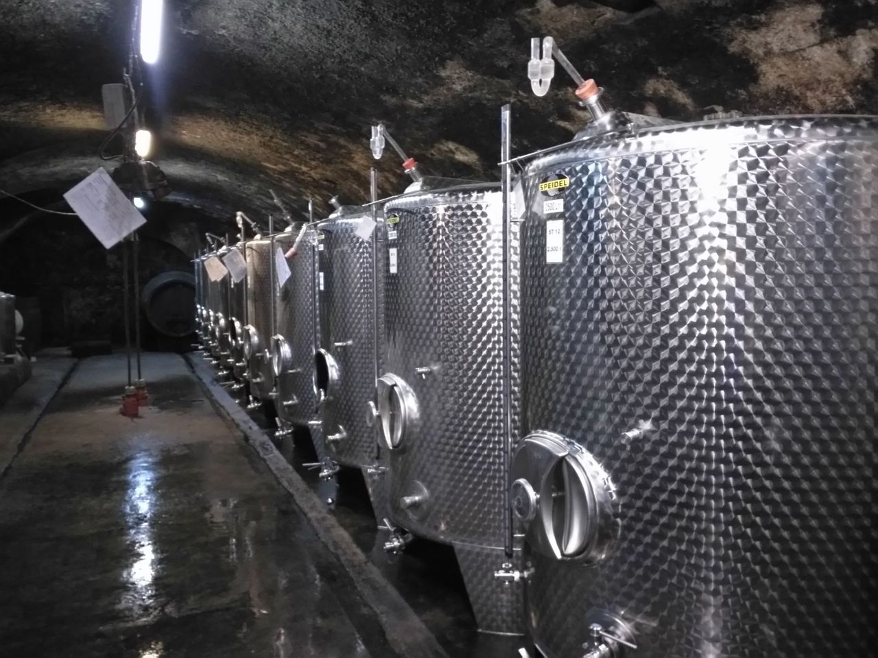 タンクのガラス栓から聞こえる音も静かなワインセラー内に響き、なかなか素敵な雰囲気。参考までに動画を。