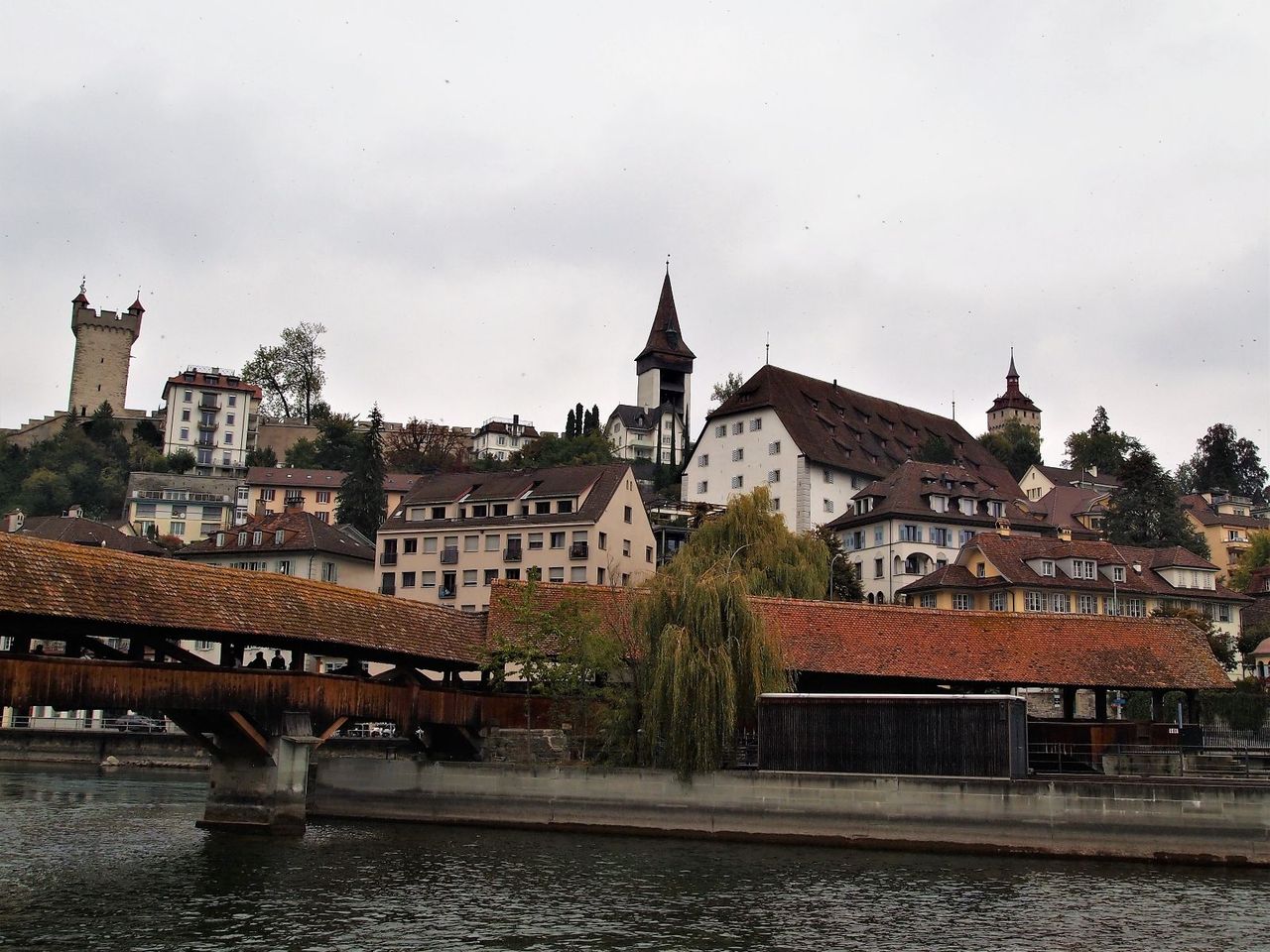スイスのほぼ中央に位置するルツェルン。スイス7番目の都市で人口は8万人ほど。場所はこちら(Google Map)。今回の旅で唯一天候があまり良くなく、残念ながら分厚い雲に覆われてしまった。