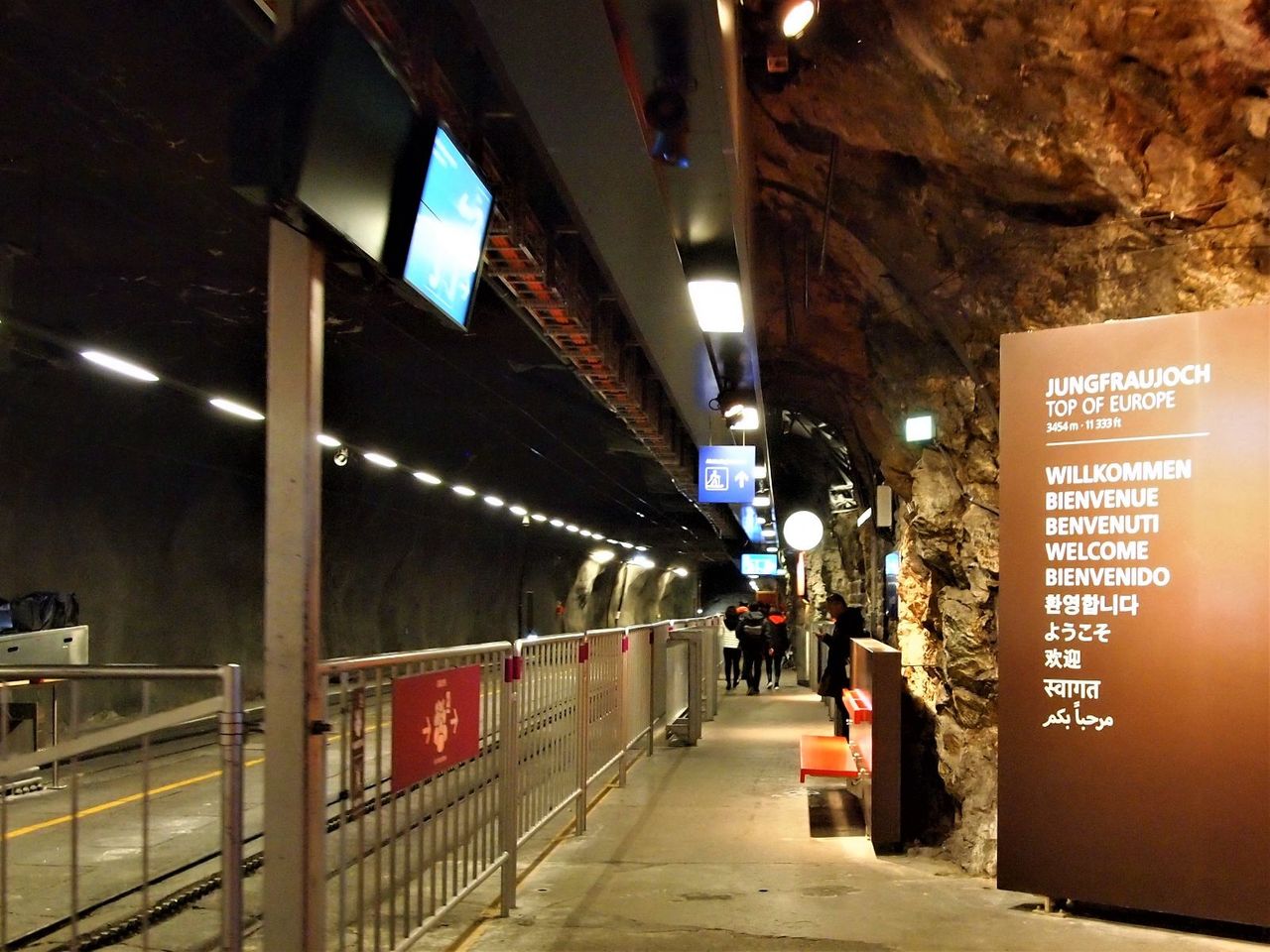 ドイツの Zugspitze;ツークシュピッツェ と同じく、岩盤の中を電車が進んでいく。そして到着したのが、ヨーロッパ最高峰の鉄道駅であるユングフラウヨッホ駅。3454m。2枚目が外から見た展望台。この地下に駅が埋まっている。