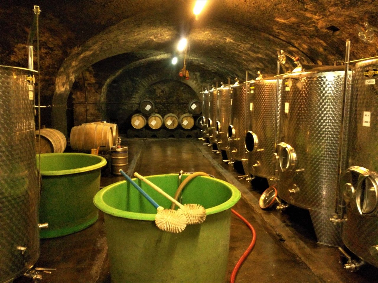 ちなみに、4枚目写真は、タンクやホース、フィルターもちろん圧搾機などなどの掃除を終えたKeller;ワインセラー。