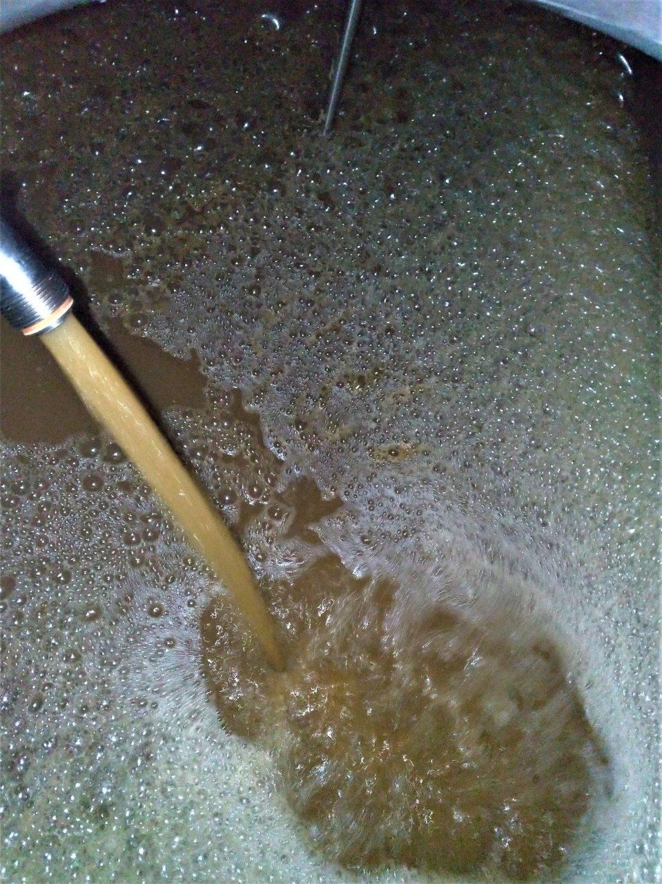 絞り出された Most;濁りのあるブドウ果汁。86 Oechsle;エクスレで、まずまずいい感じ。(ちなみに、ドイツワイン法で75 Oechsle以上がKabinett;カビネット、85 Oechsle以上がSpätlese;シュペートレーゼ の基準となっている。これはあくまで最低ラインの基準であり、各醸造者はそれぞれの基準を元にそれぞれのワインに仕立てていく。)