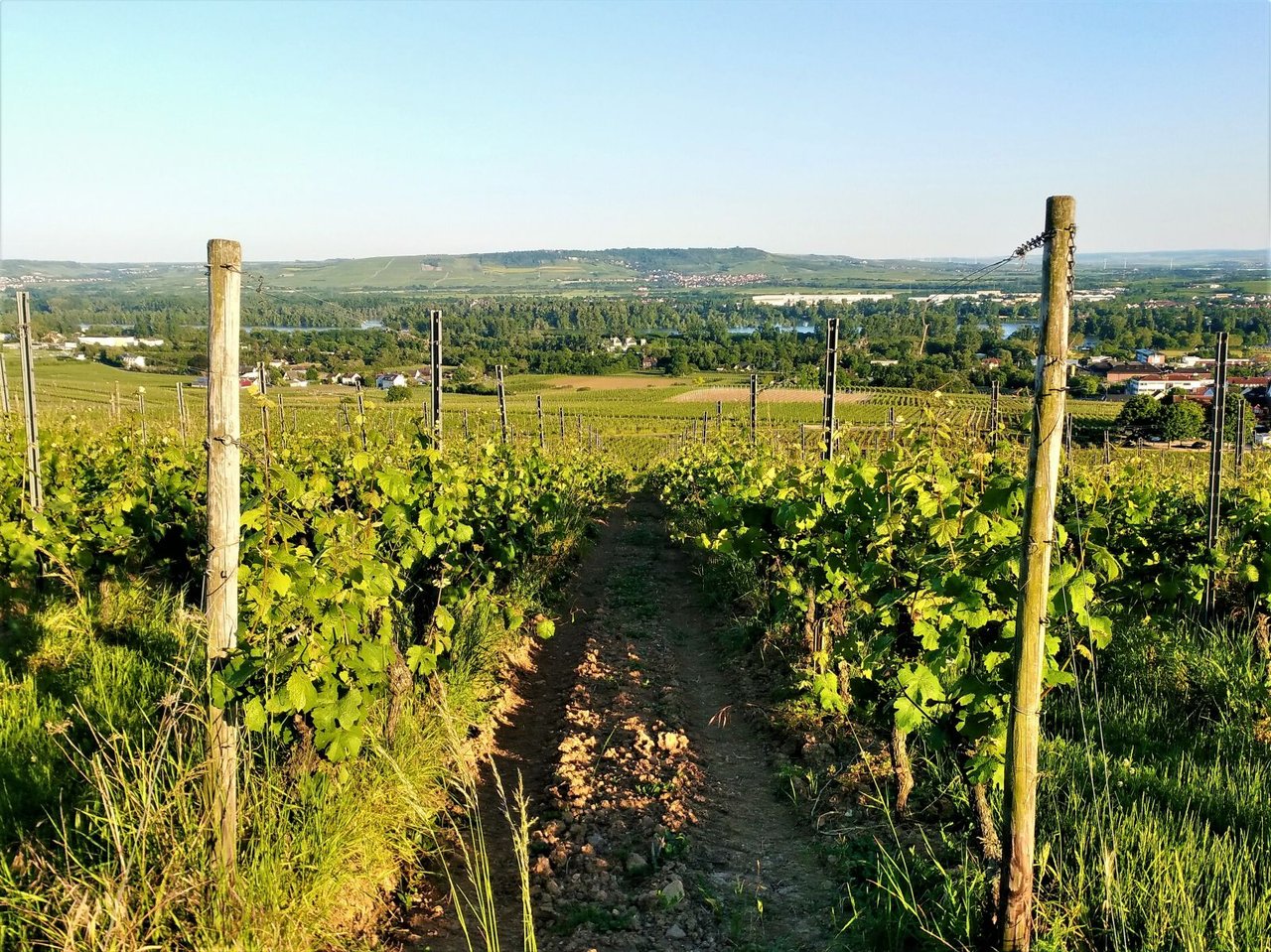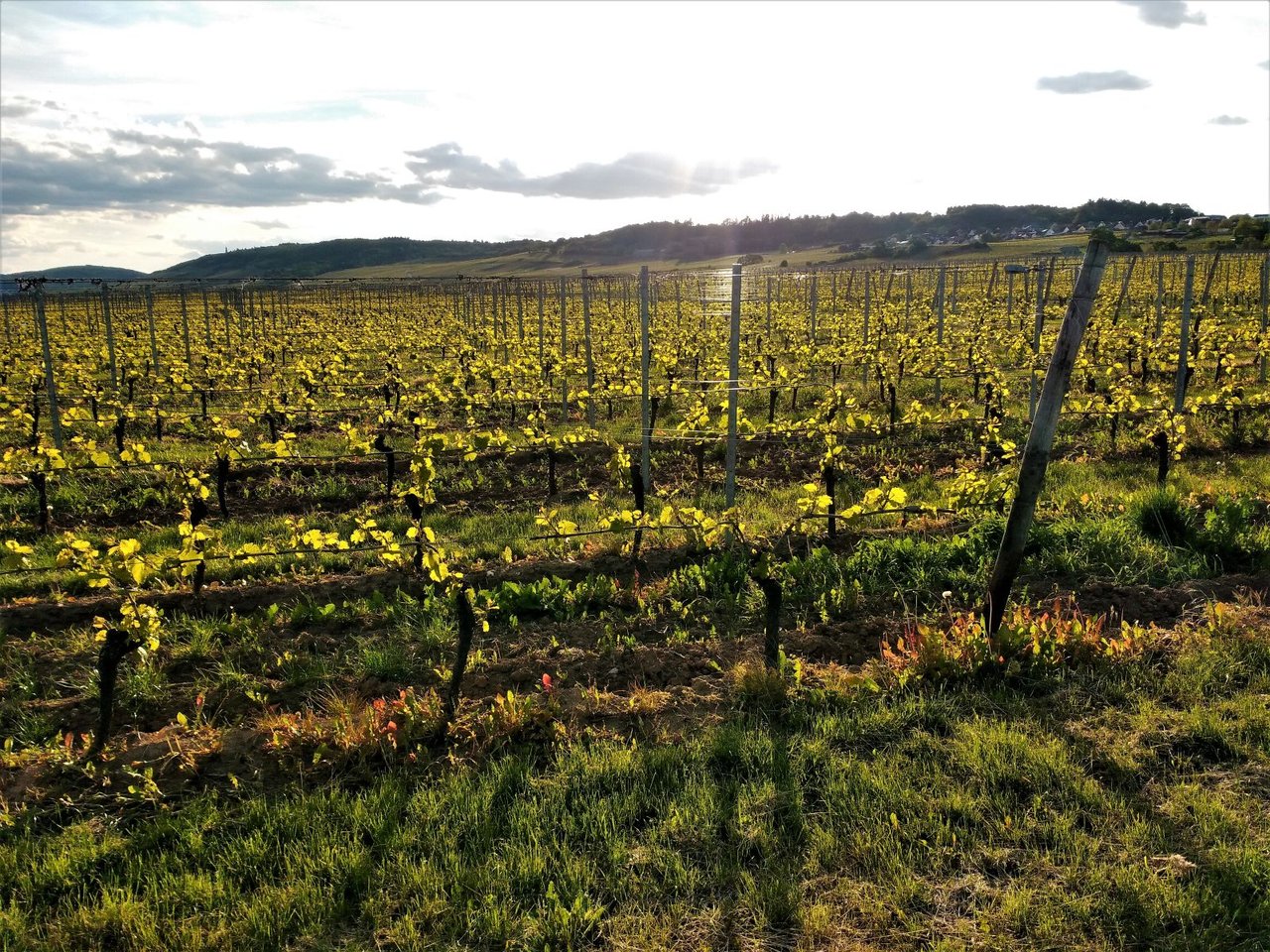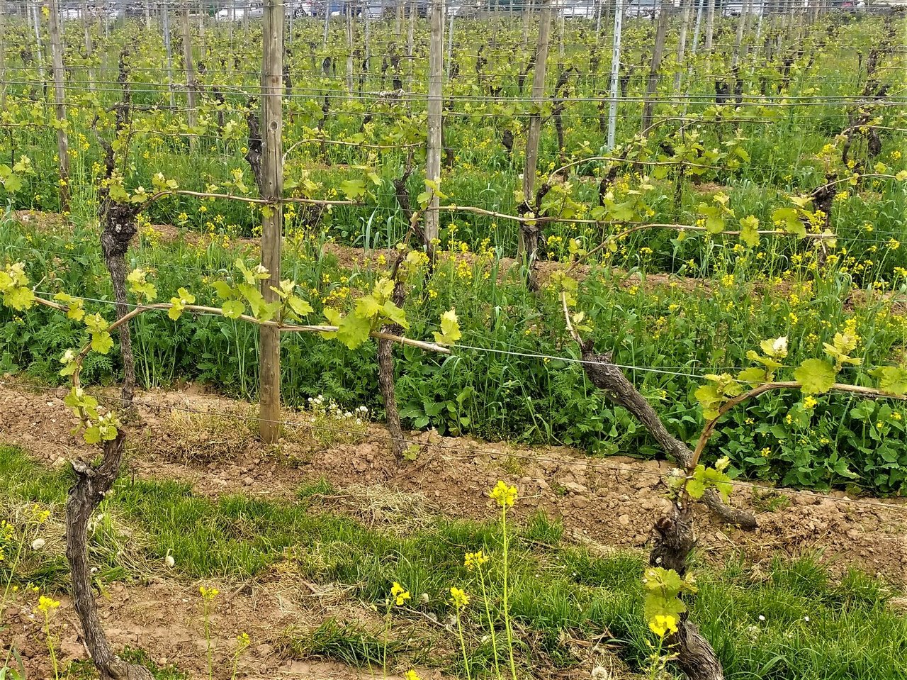 新緑と樹の茶色が良い塩梅でミックスされていて、ブドウ畑が本当に美しい。ブドウの樹が活発に動き出しているのを感じる今日この頃。