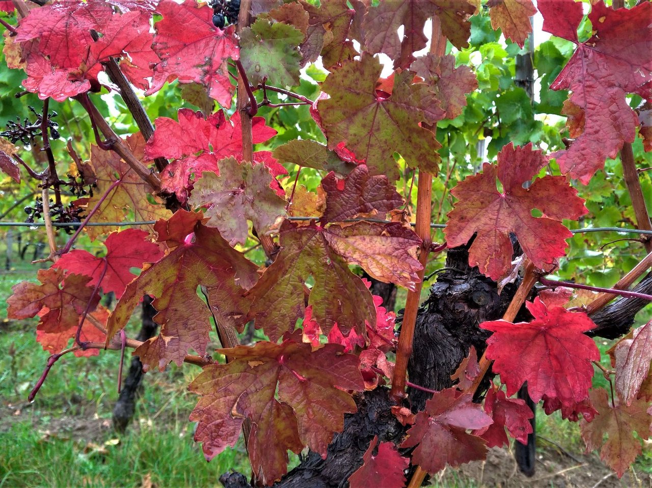 一気に秋めいて、黄葉・紅葉が始まりだしたブドウ畑。