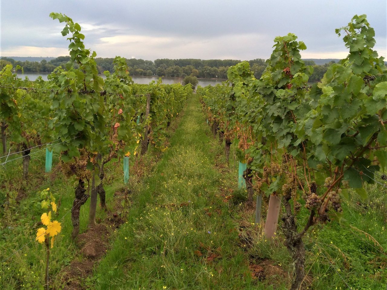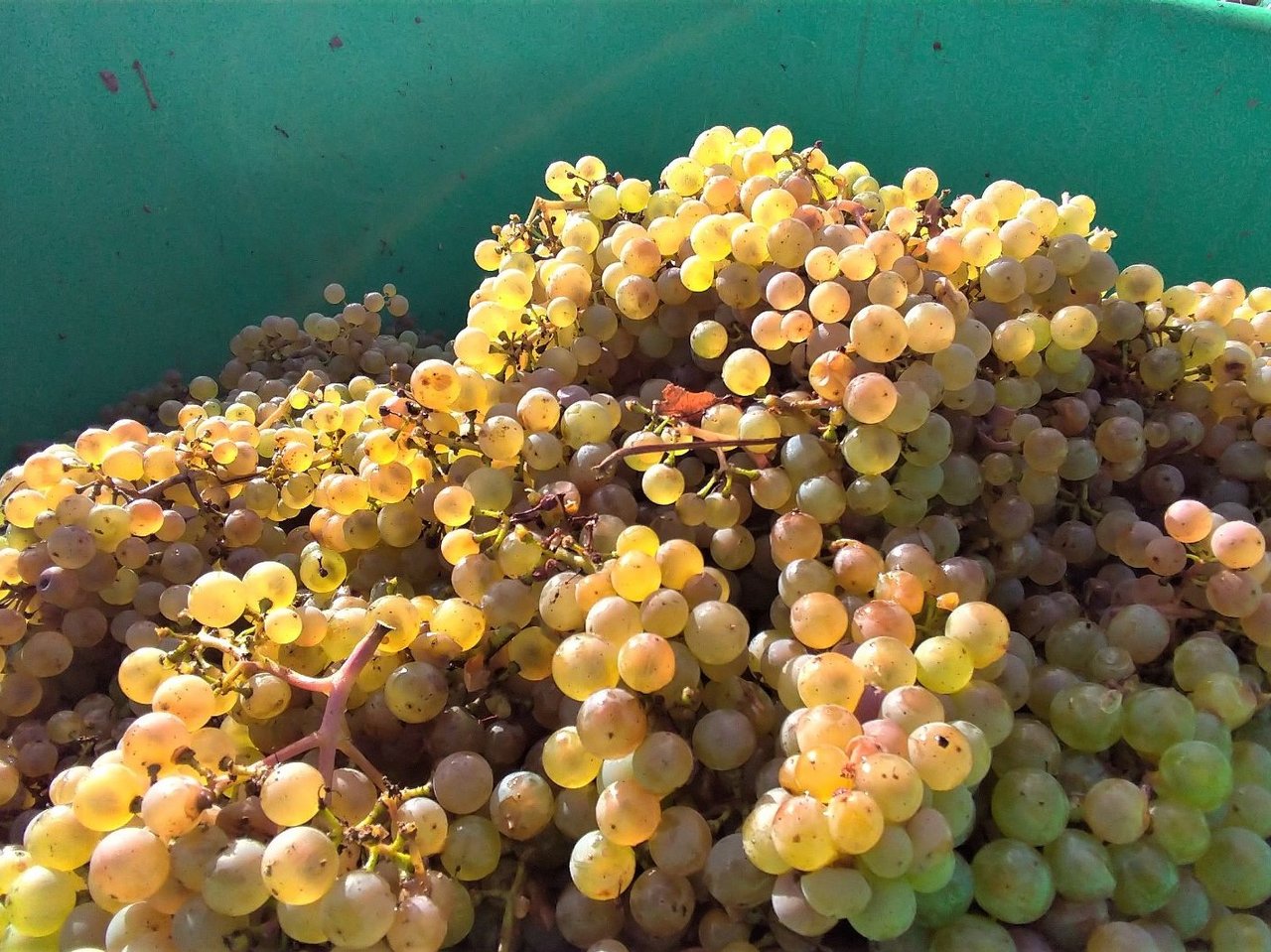 ブドウの糖度は、ブドウ畑の場所によっても異なるが、だいたい70〜80 Oechsle;エクスレ(ドイツの糖度単位)。ちなみに、だいたい80エクスレが収穫が一つの基準。甘みがだいぶ出てきているが、昨年に比べると明らかに酸味が強め。(ちなみに昨年は、収穫時ですでに90エクスレ程あり、酸味が少なかった。)