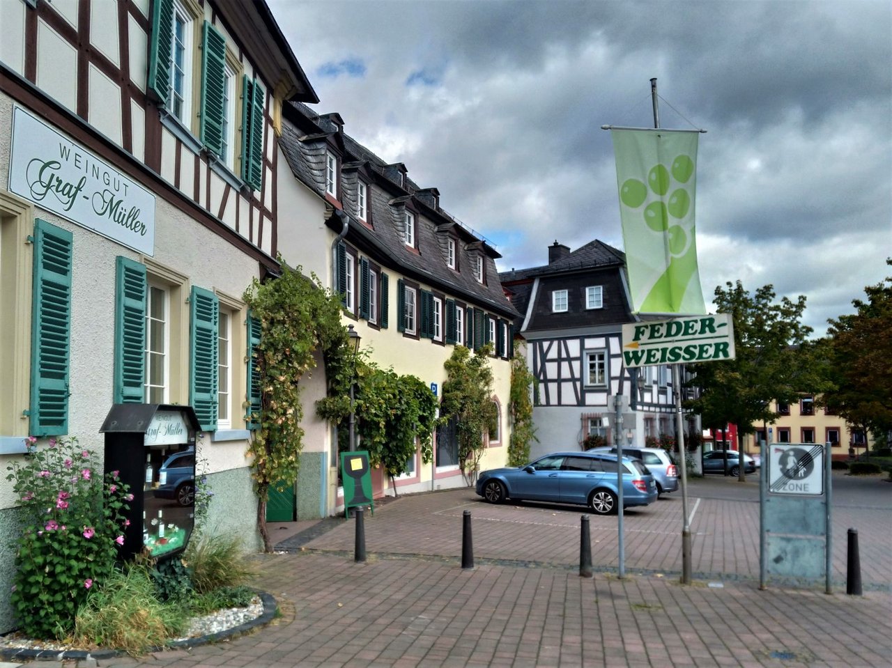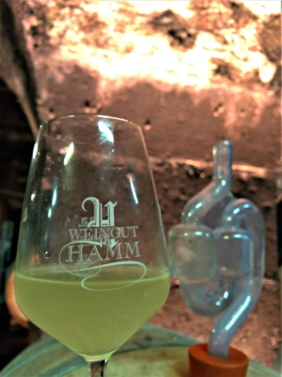 この時期の楽しみと言えばやっぱり "Federweisser;フェーダーヴァイザー"。リューデスハイム辺りでも、たくさんのレストランやワイナリーにフェーダーヴァイザーの看板がでていて、多くの人が季節モノとして楽しんでいる。Hammワイナリーのレストランでも提供していて、"Zwiebelkuchen;玉ねぎケーキ(ドイツ版キッシュみたいなもの。)" とセットで飛ぶように売れている。(フェーダーヴァイザーと玉ねぎケーキをセットで楽しむのがドイツ流。)