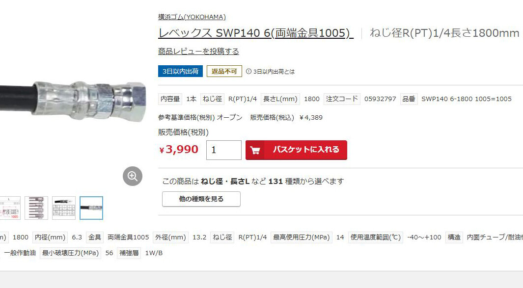 ºÇ¹â»ÈÍѰµÎϤÏ14MPa¤Î¥â¥Î¤Ë¤Ê¤Ã¤Æ¤¤¤ë¤¬¡¢ºÇ¾¯Ç˲õ°µÎϤÏ56MPa¤Î¾¦ÉʤʤΤǡ¢¤Þ¤¡Âç¾æÉפÀ¤í¤¦¡£