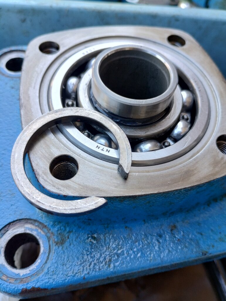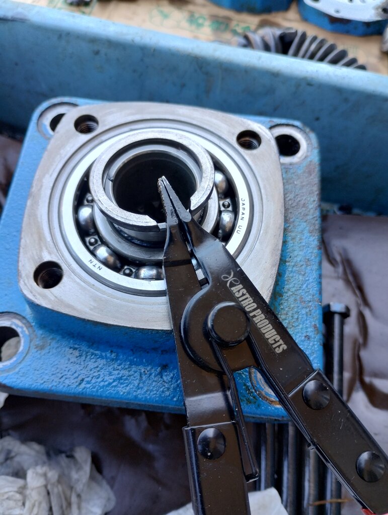 軸部の圧入は逆方向から叩いて入れていく。この時、歯が欠けないよう木をかませながら打ち込んでいくと良いだろう。軸部を定位置までしっかりと押し込めたら、ロックリングを取付。(結構固くて苦労。。)